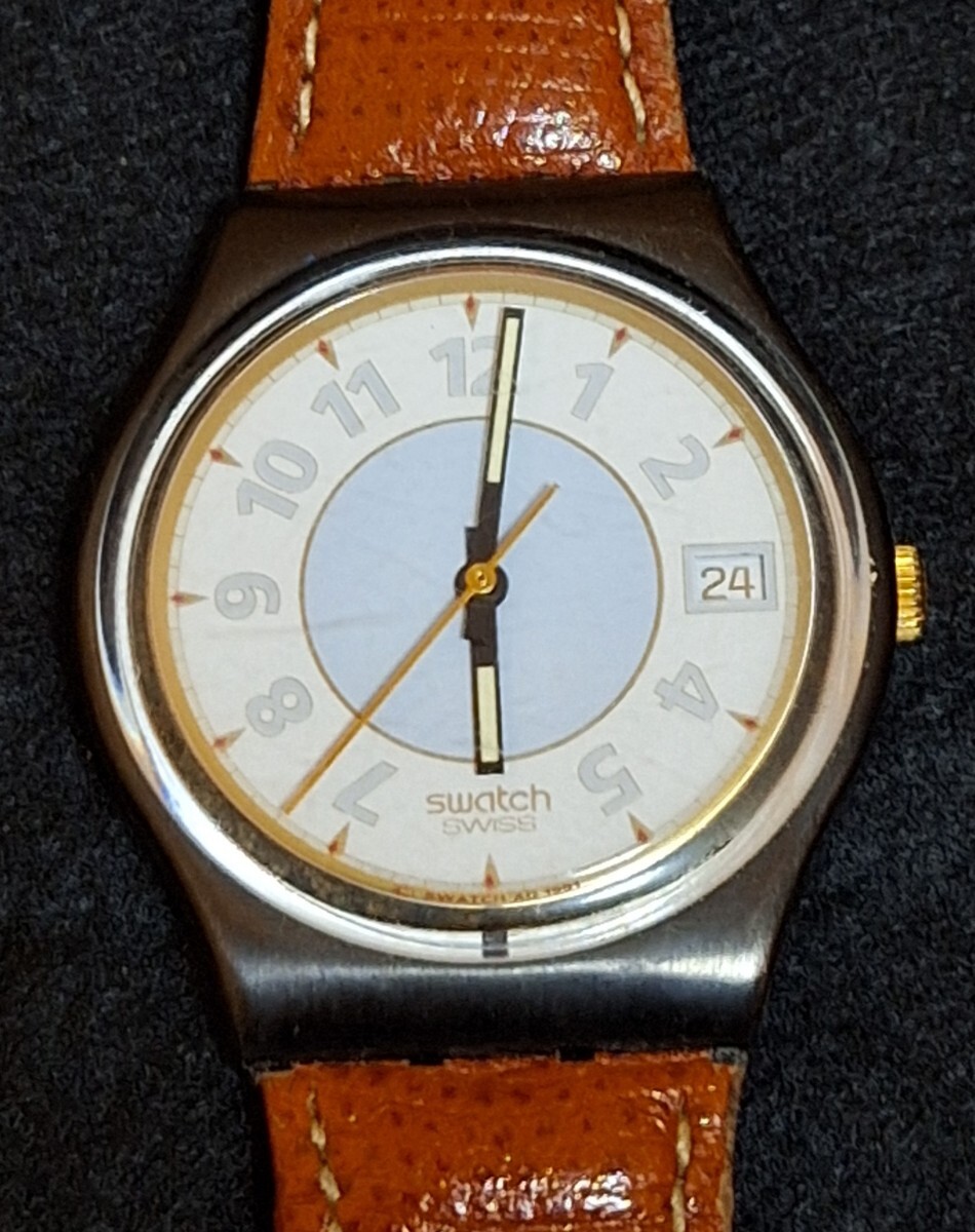 ☆(稼動品)Swatch 1992 George SWISS MADE 9003 スウォッチ1992年 レギュラーモデル/ベルト 茶色(Swatch製) 電池交換済み 外箱無し / 計1個