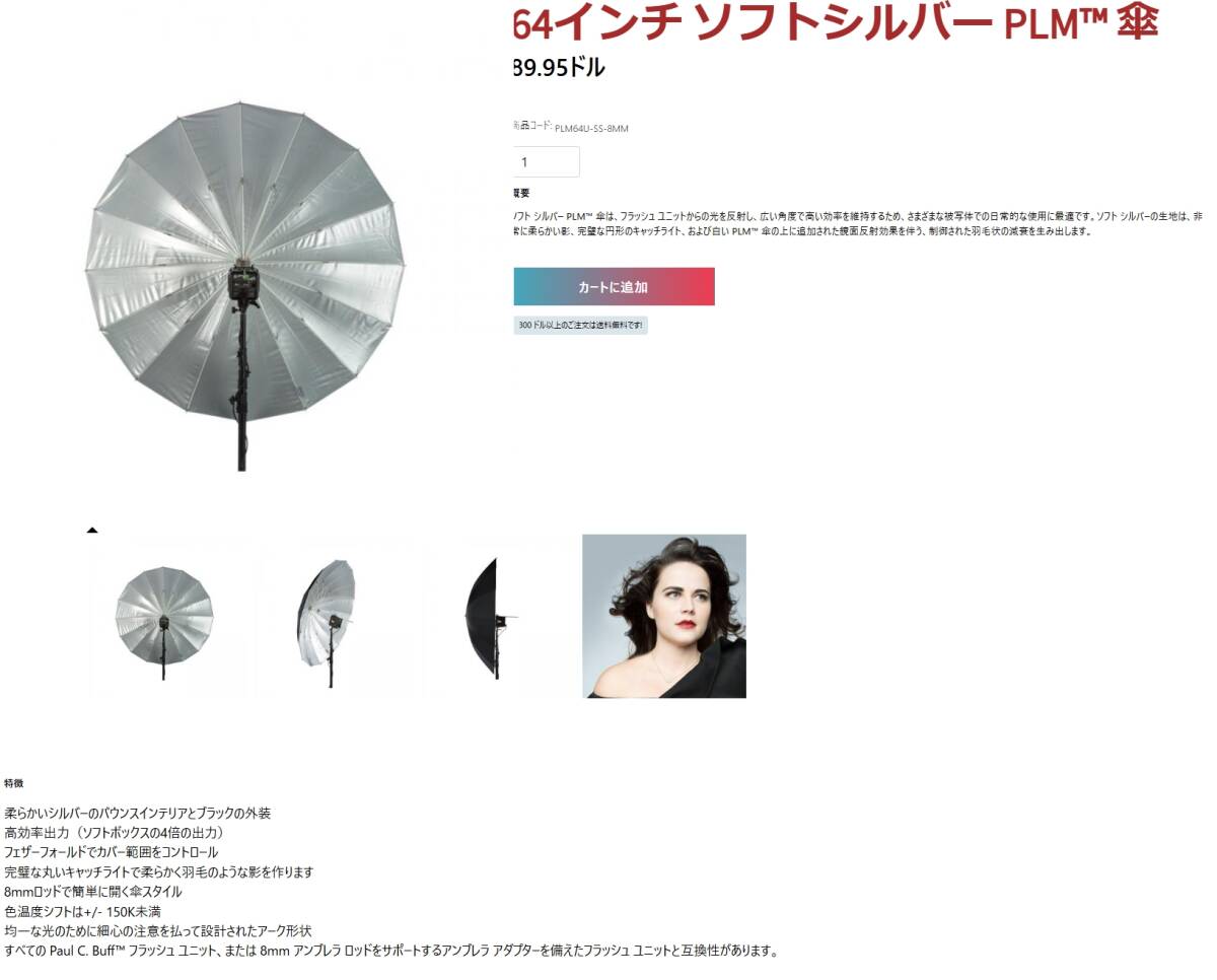 プロ用 大型アンブレラ Paul C. Buff 64インチ PLM64U-SS-8MM ? (直径だと約140cm)