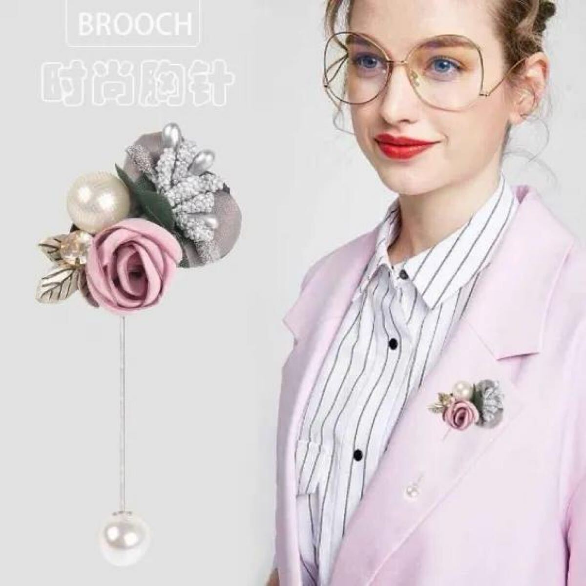 Product name: ローズ コサージュ  フォーマル ブローチ  パール 胸飾り  ピンク
