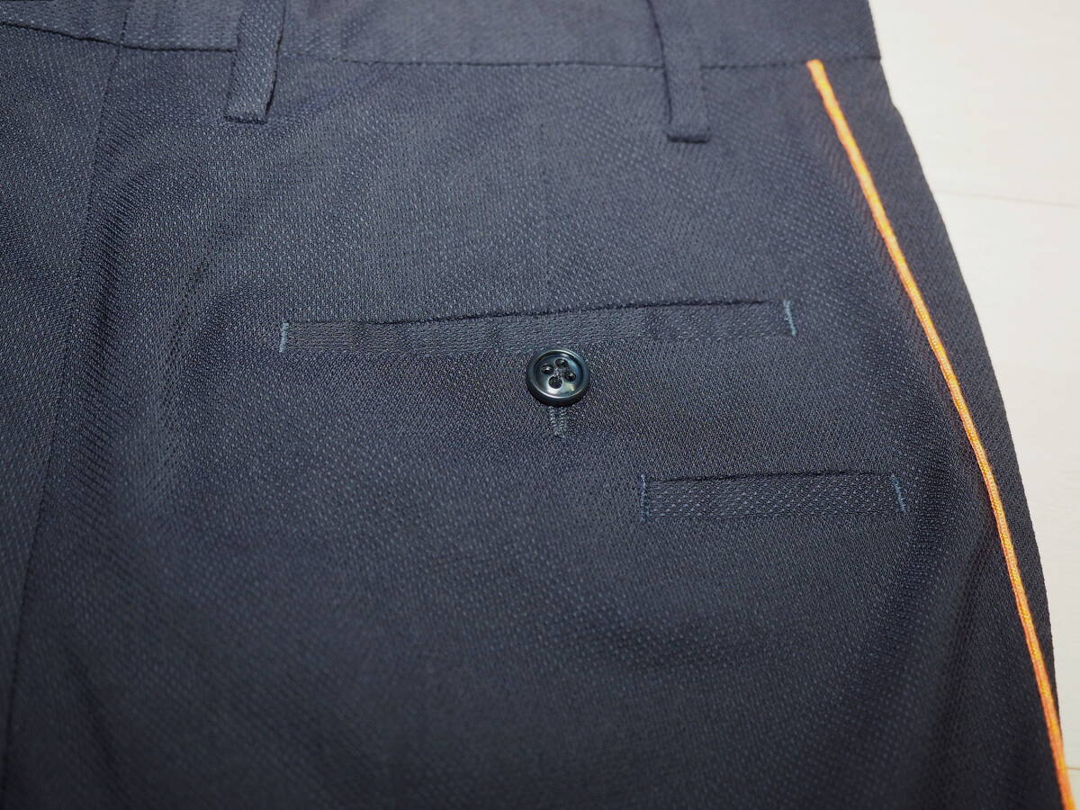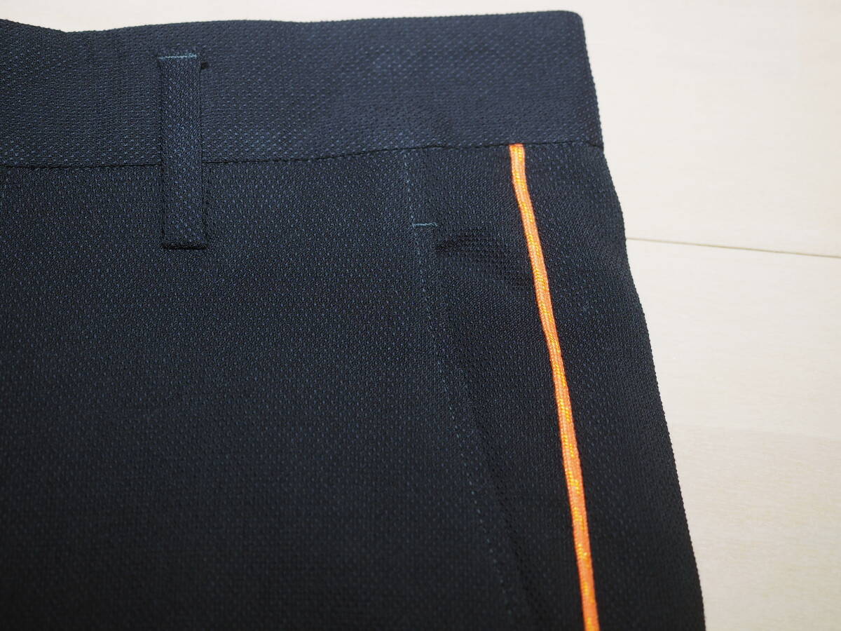 上質なヴァージンウール素材を用いたショートパンツです。フロントはZIPフライ、サイドに2本のオレンジのラインが入ったデザインです。