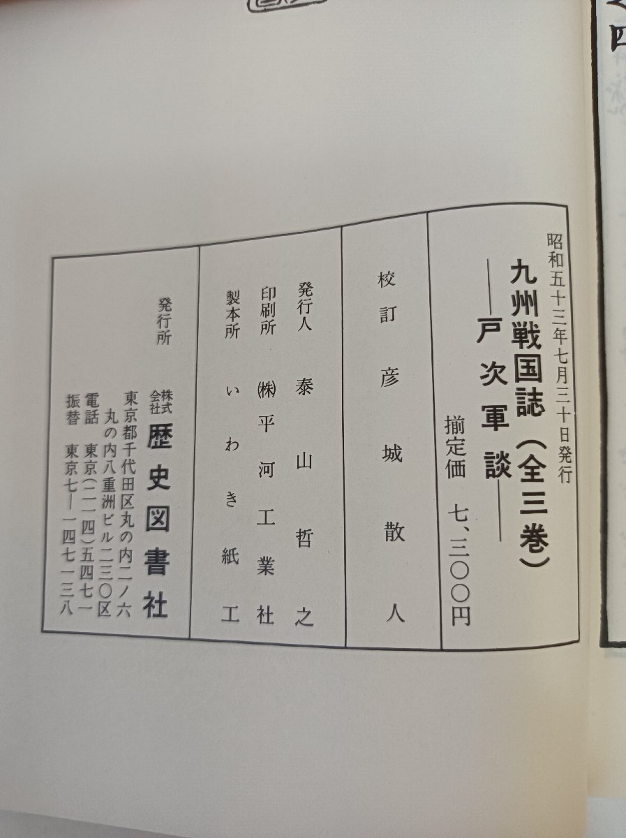 Product name: 九州戦国誌(全) 全3巻 上中下巻セット揃い 戸次軍談 1978 外箱付き 歴史図書社/毛利元就/大友宗麟/吉岡宗歓/立花道雪/島津義久/B3503173