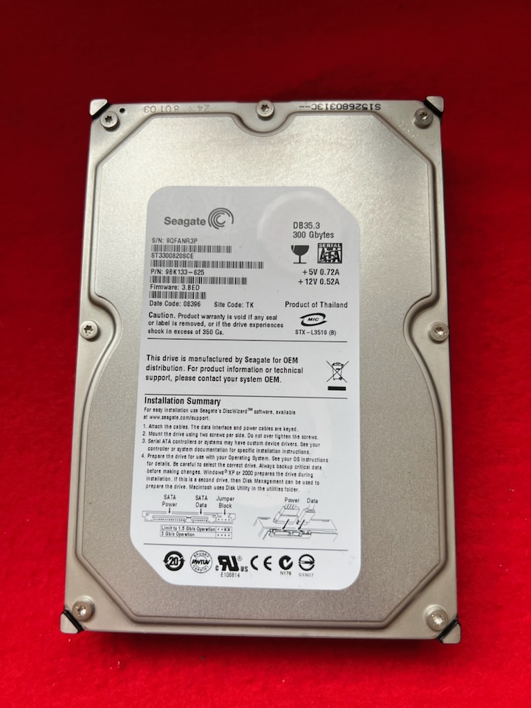 不良返金保証 東芝RDシリーズレコーダー用HDD ☆Seagate製 300GB/3.5インチ/SATA/ST3300820SCE (AA49)