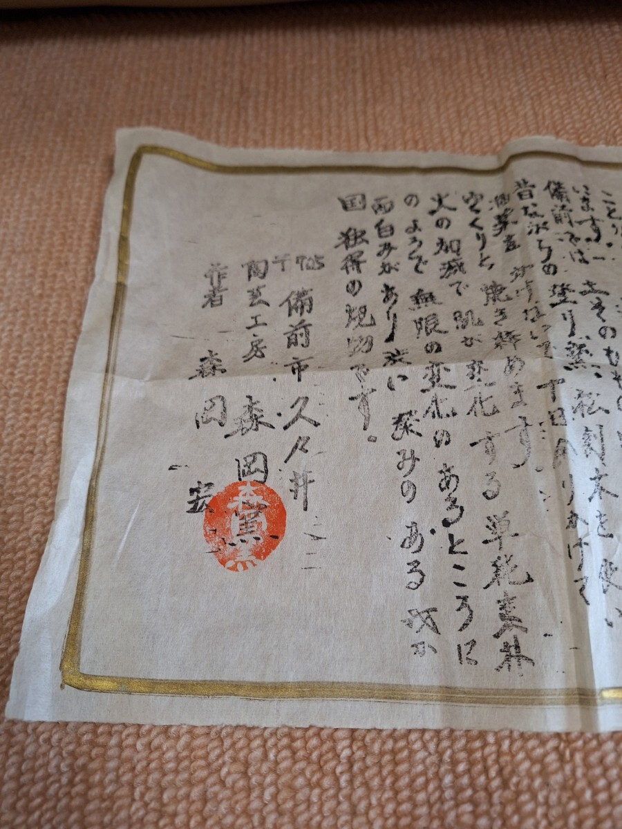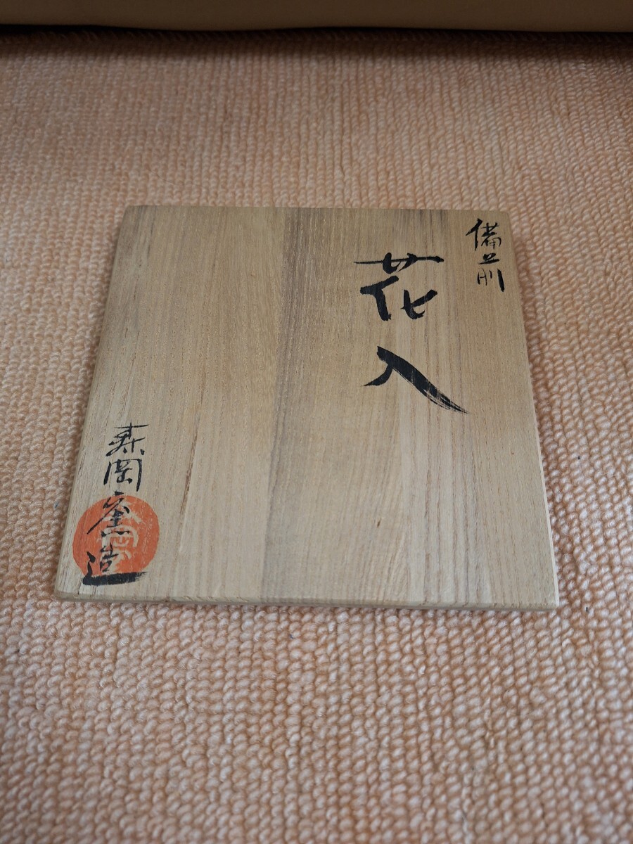 備前焼、窯変花入、森岡 宏です。高さ約24cm、口直径約10cm、栞、共箱入りです。