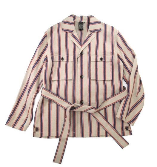 大人向けの上質なインポート等を扱う「ダブルクロージングスタンダード」のメンズライン「D/him(ディーヒム)」の薄手 ベルト付き ストライプシャツジャケットです。