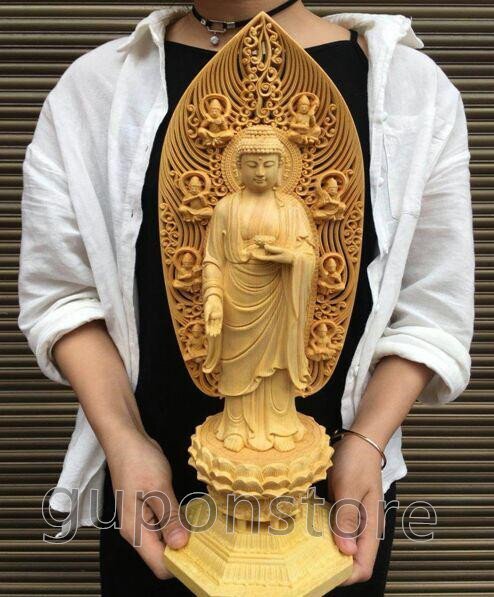 Product name: 大型高43cm 阿弥陀如来像 黄楊木 木彫 置物