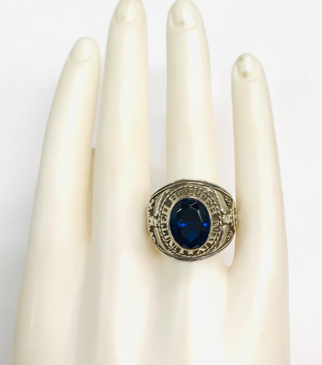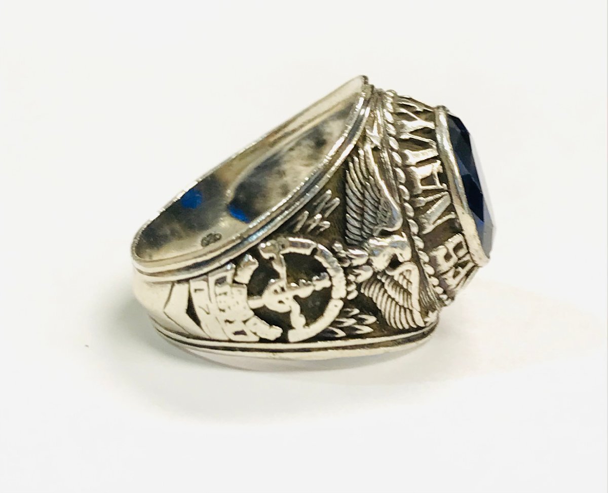 qoj.ZBE01 SILVER925 カレッジ アメリカ合衆国海軍 UNITED STATES NAVY,USN ブルーストーンリング(合成スピネル) 21号