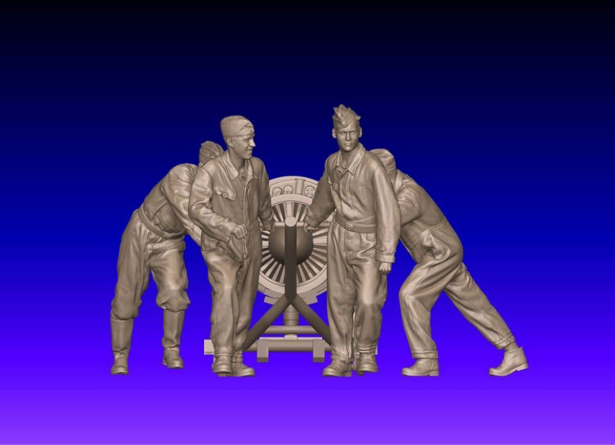 1/32 レジンキット 未塗装 WWⅡ ドイツ空軍 Me262 ジェットエンジン 兵士フィギュア4体 250427