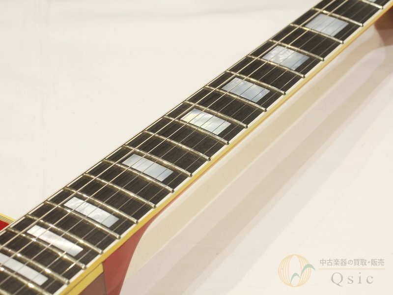 セットネック構造による豊かな鳴りに加えて、往年のレスポールの特徴であるその重さ、エボニー指板のクリアな質感、さらに経年による深みが重なり合い、重心の低いガツンとくる低音と針を刺すように鋭く抜ける高音域がポイントです。