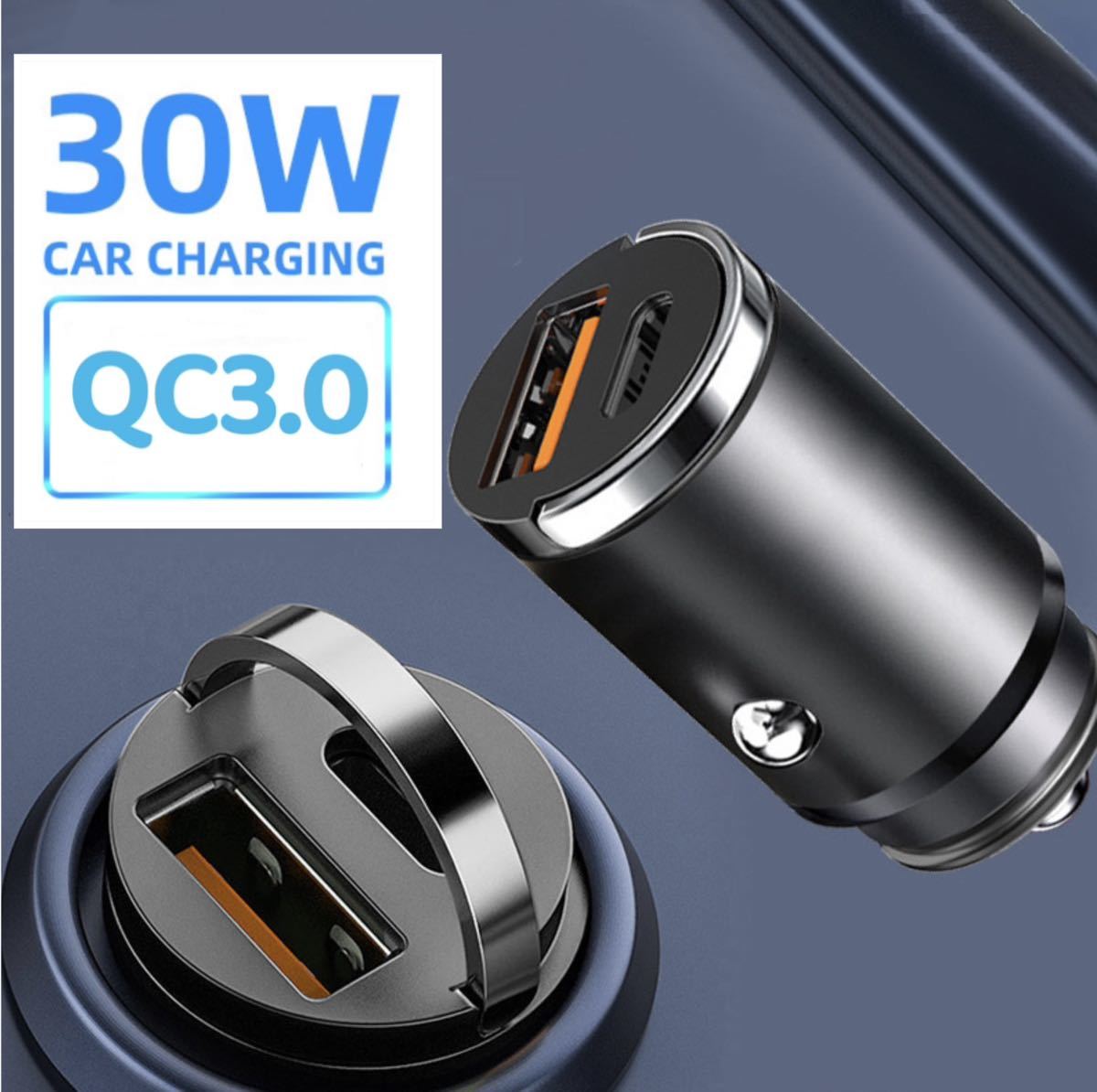 Product name: USB シガーソケット 超小型 30W カーチャージャー 2ポート type C カーチャージャー QC3.0車載充電器 金属製