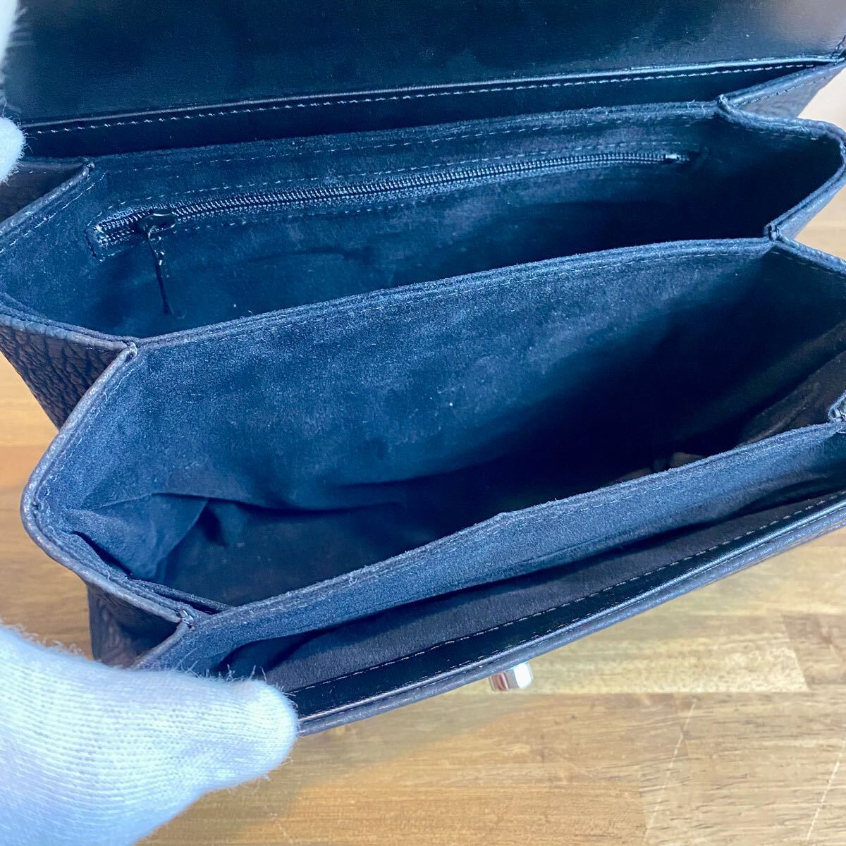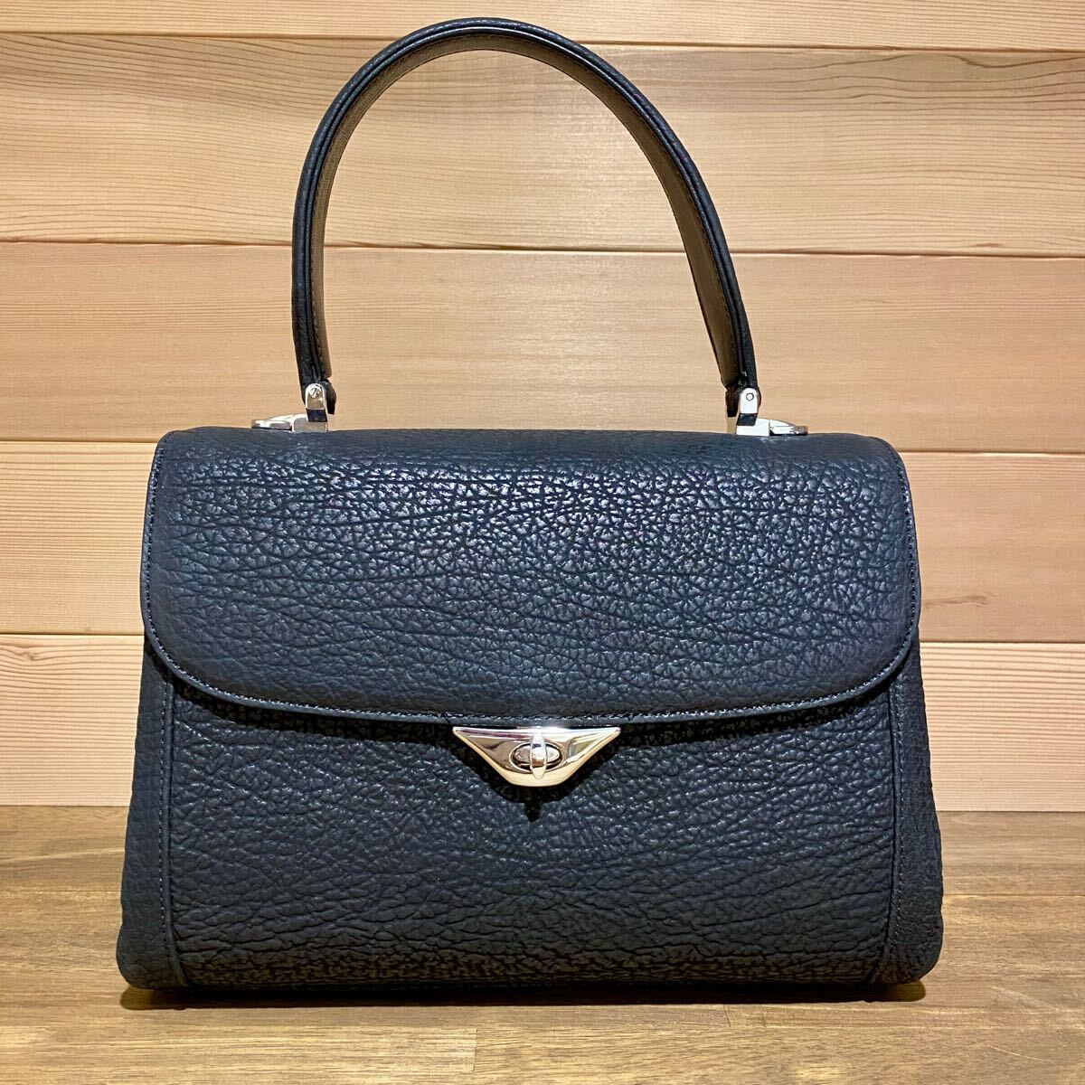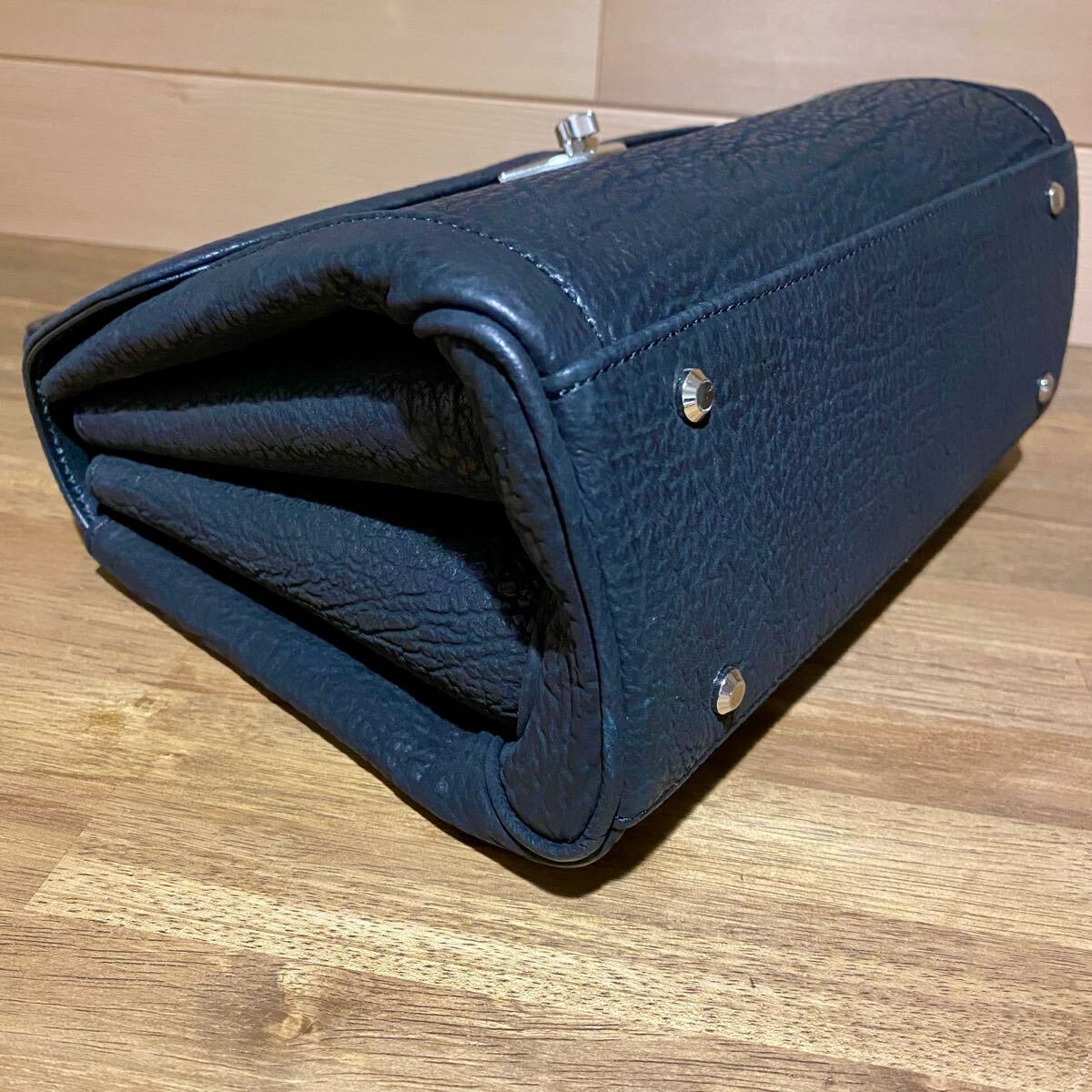 ★未使用品★ 即決 シャークスキン ハンドバック 2way ブラック 三室構造 エキゾチックレザー トップハンドル