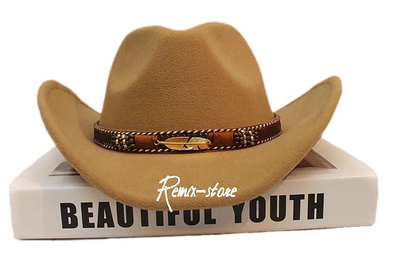 ★かっこいい A/W ネイティブ アメリカン リーフベルト ウール ツバ広 テンガロンハット 6色展開