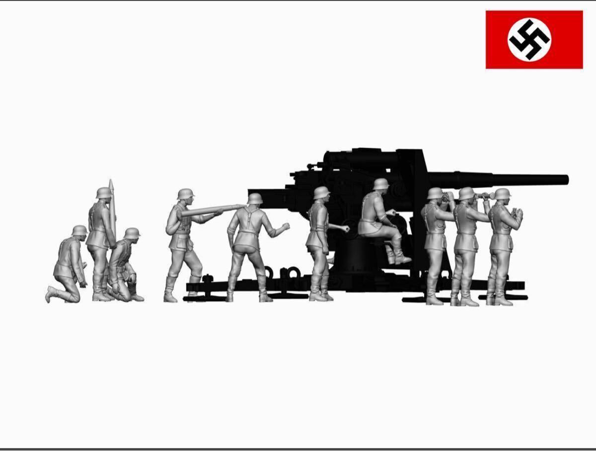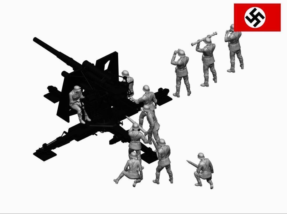 1/48レジンキット未塗装 ドイツ軍兵士フィギュア11体 【 8.8 cm高射砲別売】250607