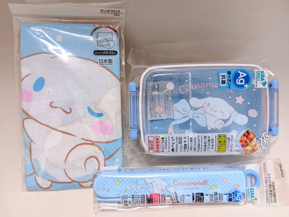新品未開封◆Skaterお弁当箱3点セット◆シナモロールサンリオシナモン 450mlランチボックスお箸お弁当クロス 子供キッズ女の子水色 日本製