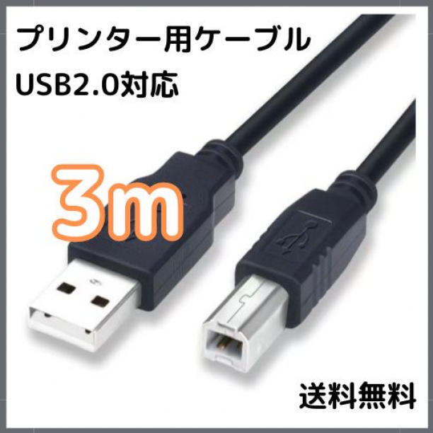 プリンターケーブル 3m USB USB2.0 コピー機 黒 ブラック