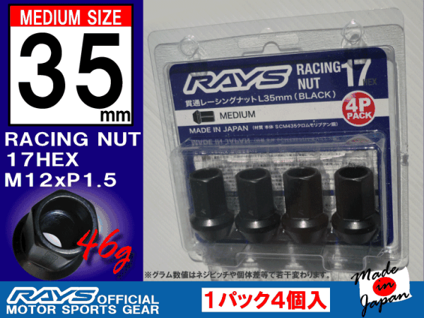 Product name: RAYS/レイズレーシングナット L35 17HEX M12x1.5 4本入 ミディアムタイプ 全長35mm/ロードスター ND5RC NA6CE NB8 NCEC