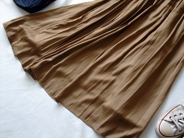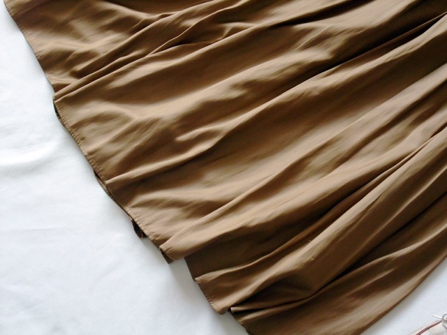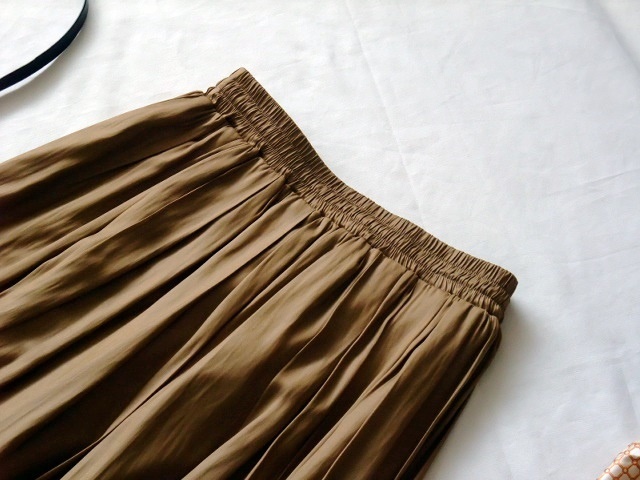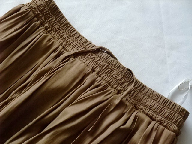 お色はキャメル系で柔らかなパウダーサテン素材の素敵なスカートです。