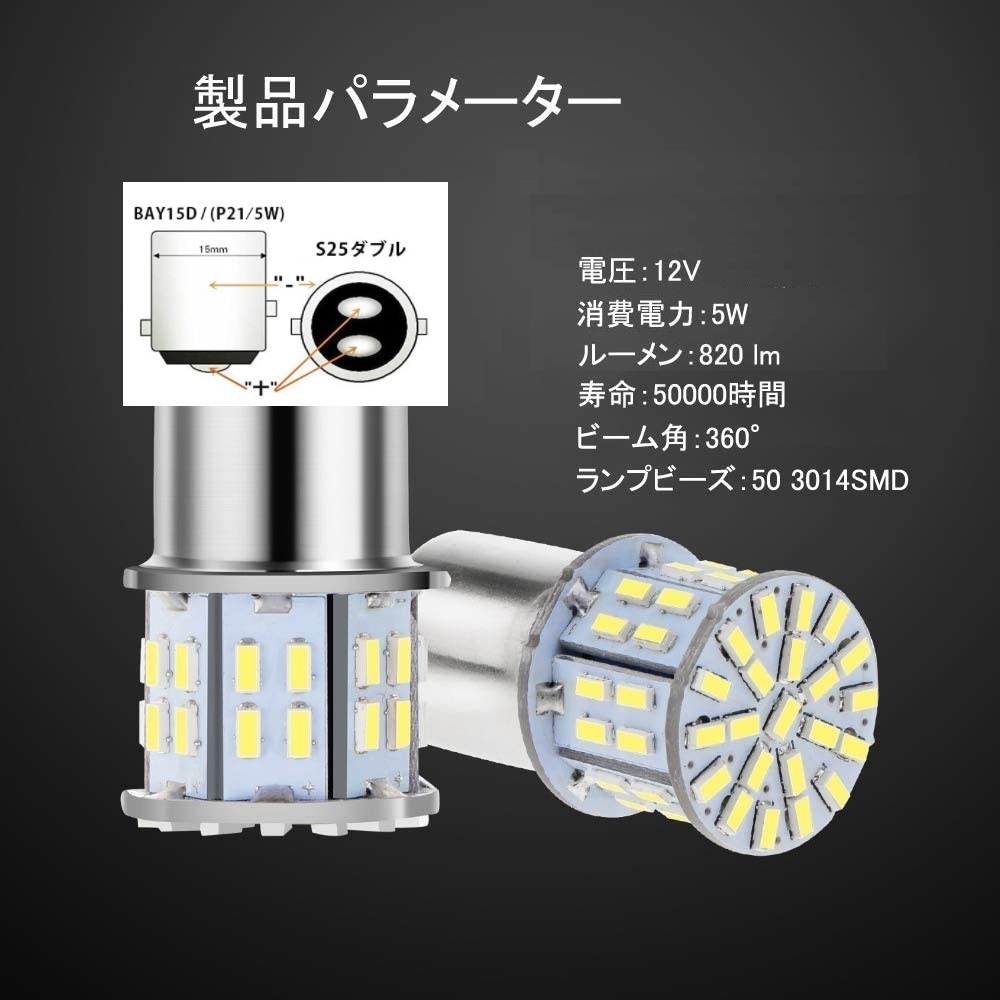 S25ダブル球(ピン角180度/段違い) 1157 BAY15D アンバー 3014 50SMD 12V LEDターンシグナルライトブラインカー電球用LED