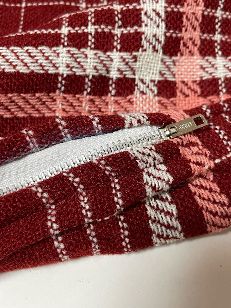 昭和レトロ 座布団カバー 小豆色 ヴィンテージ 新品 未使用 アクリル100% 5枚セット 日本製 チェック柄