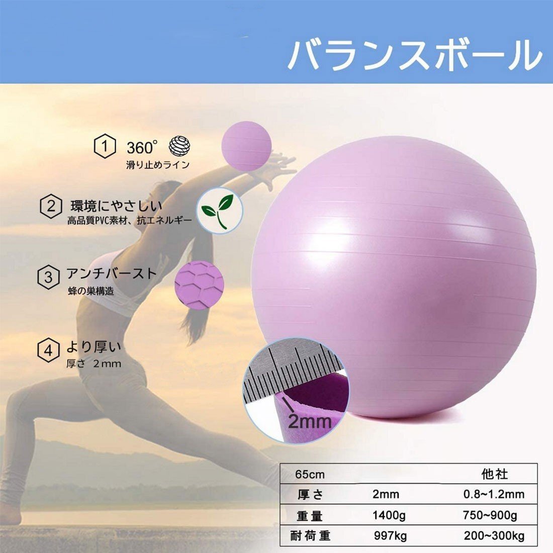 ・パッケージ内容:バランスボール*1、固定リング*1、トレーニングチューブ*2、フットポンプ*1、ボトルピン2、栓抜き*1
