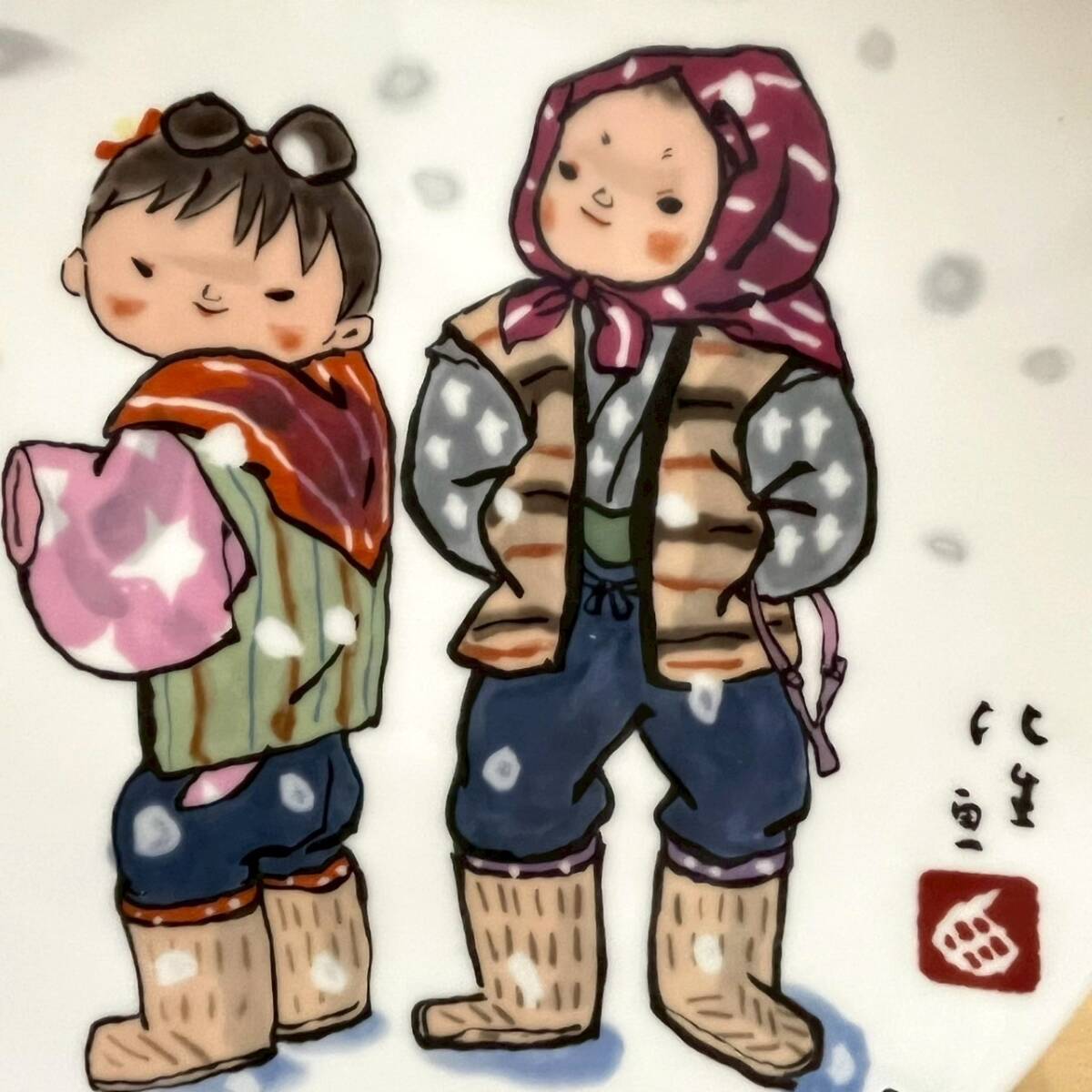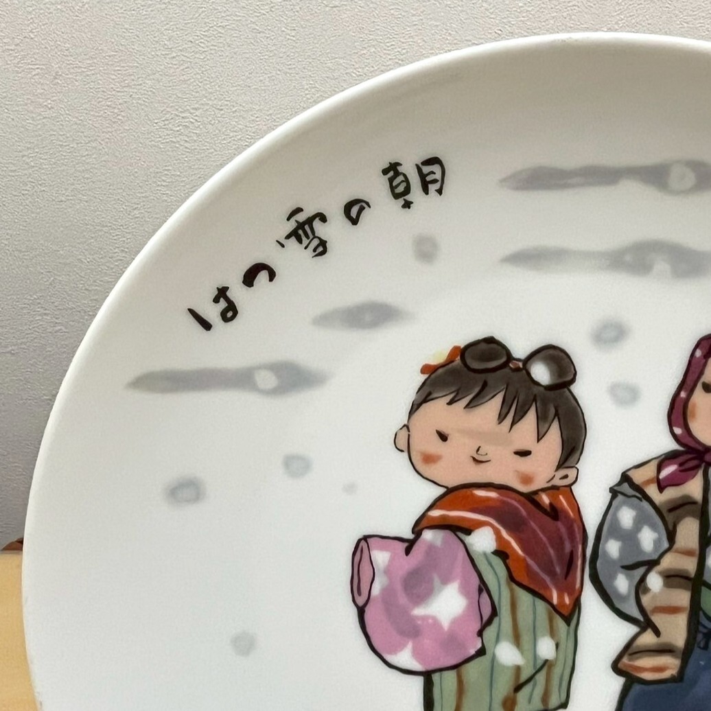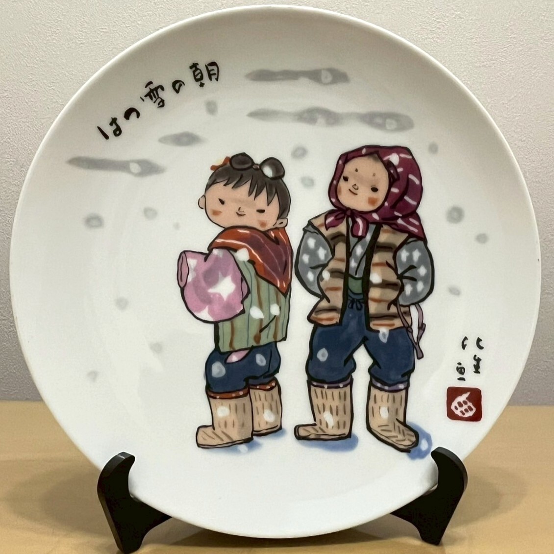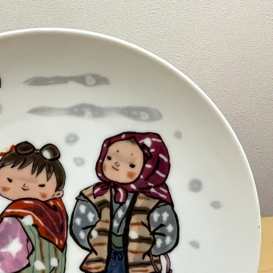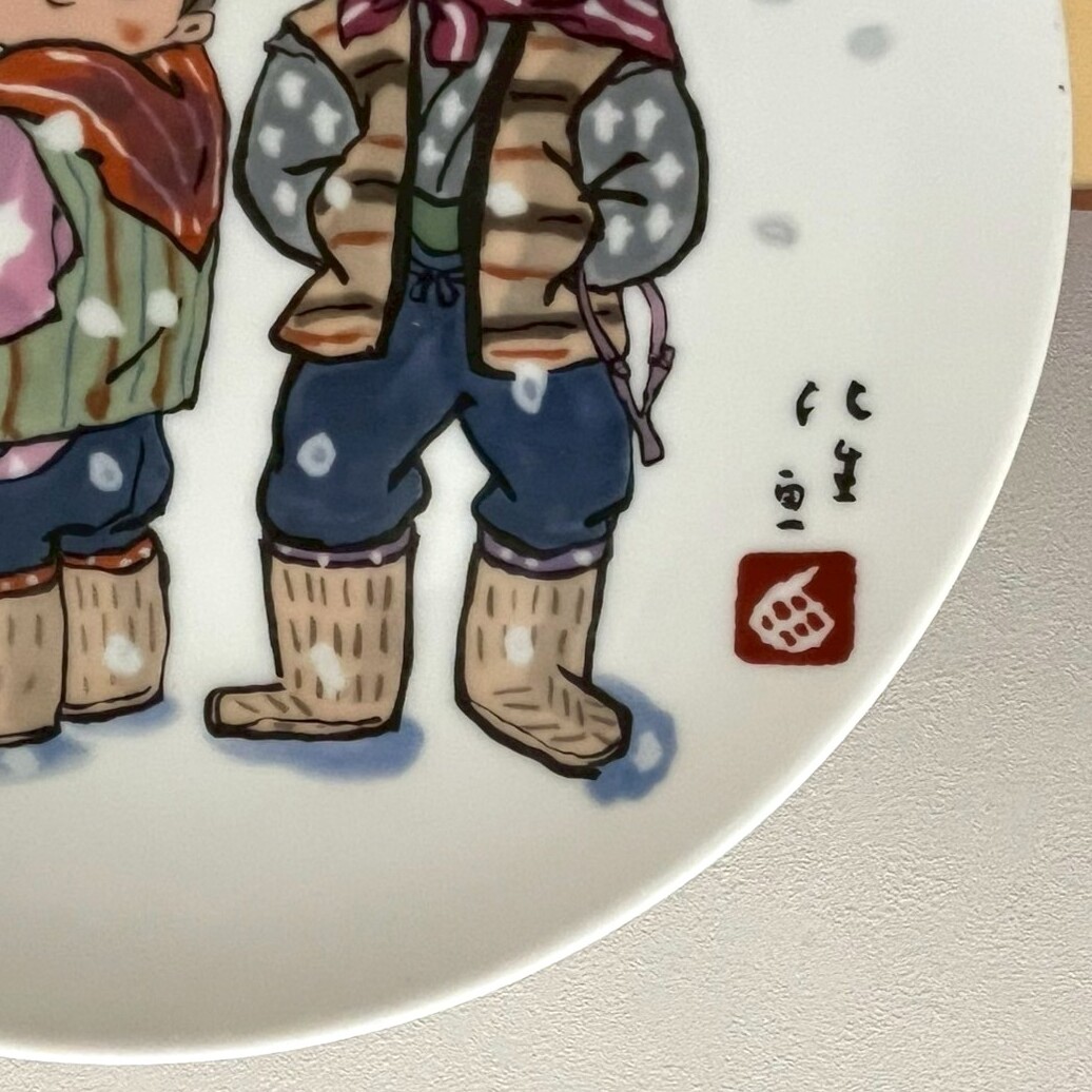 Product name: Noritake ノリタケ 西原比呂志 はつ雪の朝 飾皿 絵皿 高台に壁掛け用穴有 色絵 童画 [255138]