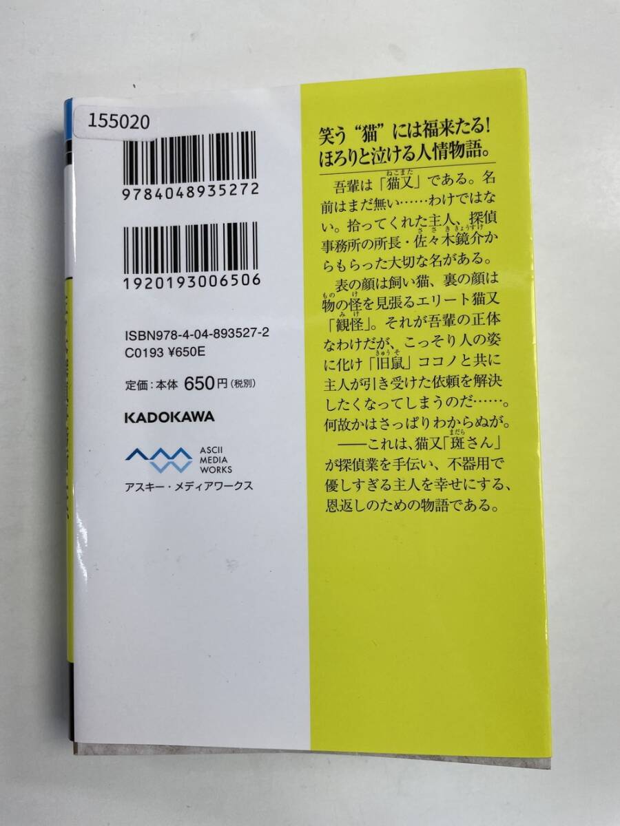 Product name: 佐々木探偵事務所には、猫又の斑さんがいる。 / 杜奏みなや メディアワークス文庫 平成29年 2017年発行初版【K155020】