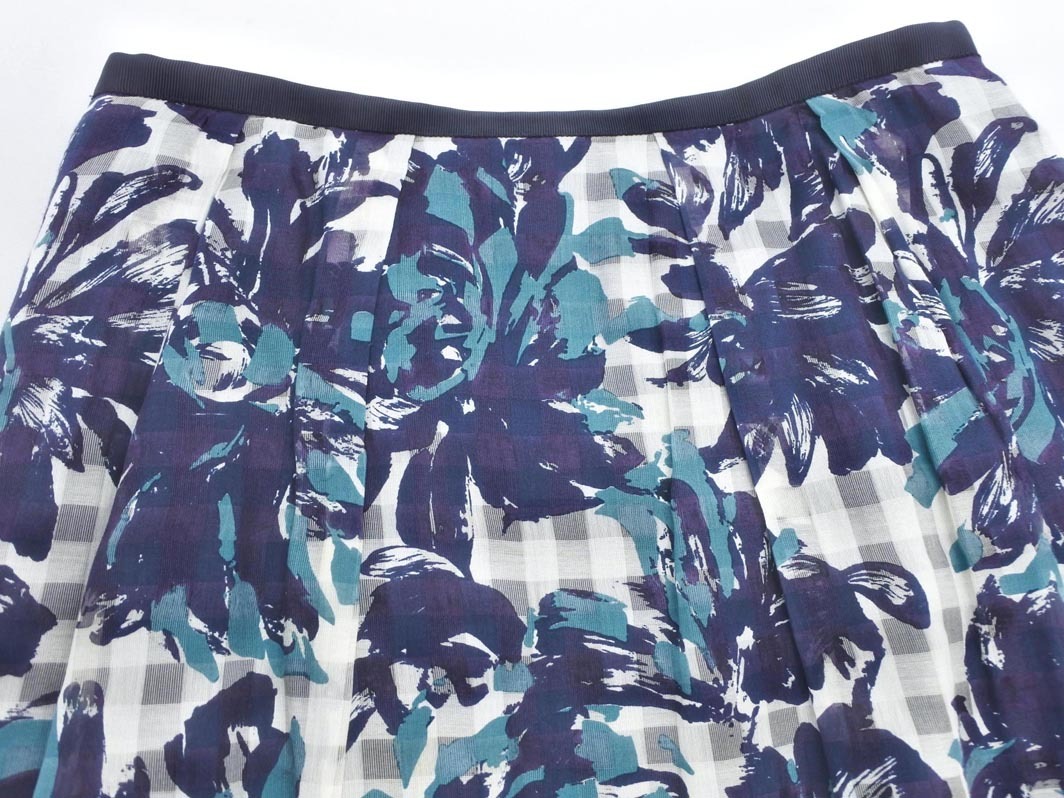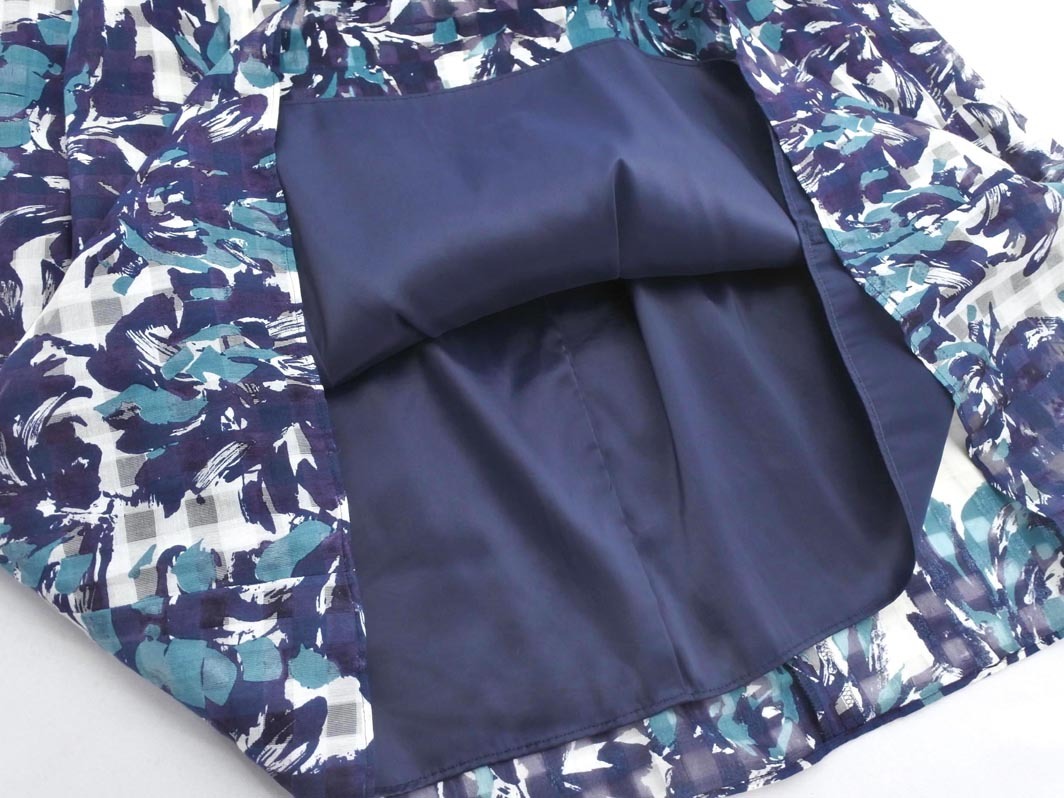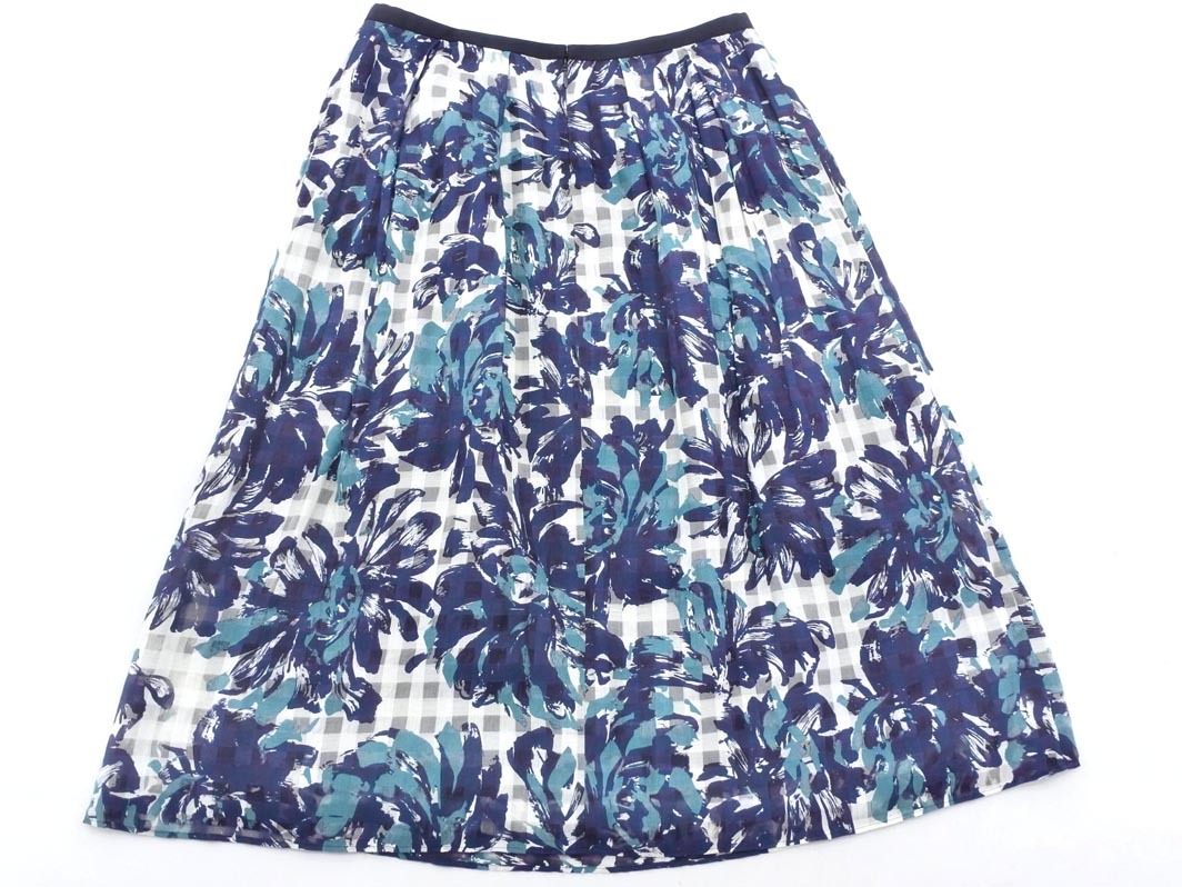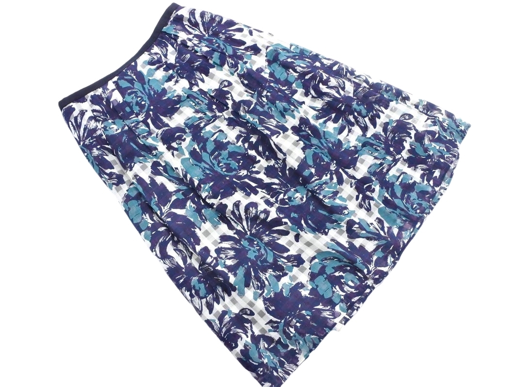 Product name: PAUL STUART ポールスチュアート 綿絹 チェック 花柄 スカート size6/白x紺 ■◇ ☆ ffd0 レディース