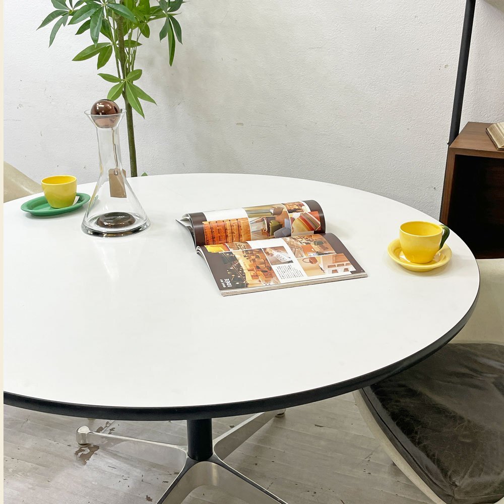 ● ハーマンミラー Herman Miller コントラクトテーブル ラウンドテーブル ホワイト W120cm ビンテージ C&R イームズ ミッドセンチュリー