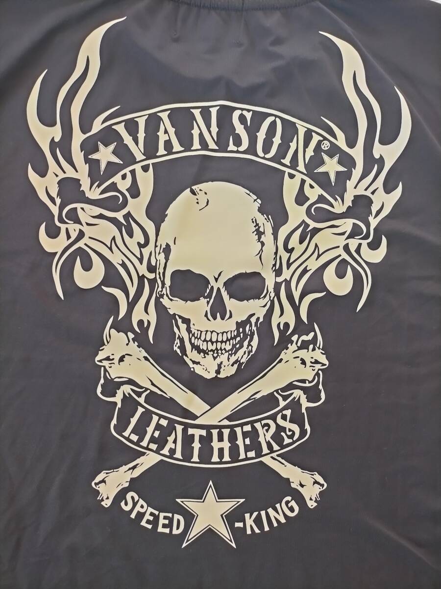 VANSON バンソン フライングスカル 色ブラック ドライTシャツ クルーネック半袖 サイズ:L 素材:ポリエステル93% ポリウレタン7%