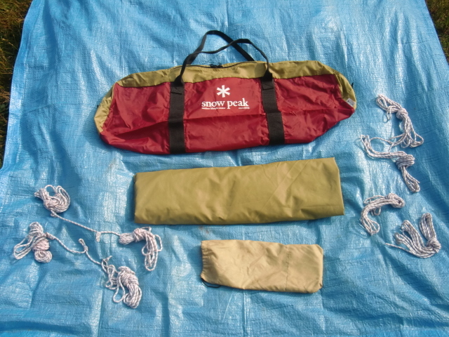 出品内容は最後の画像に映っている物がすべてです、タープ本体、張り綱(2股ロープ2本、他4本) 専用収納バック