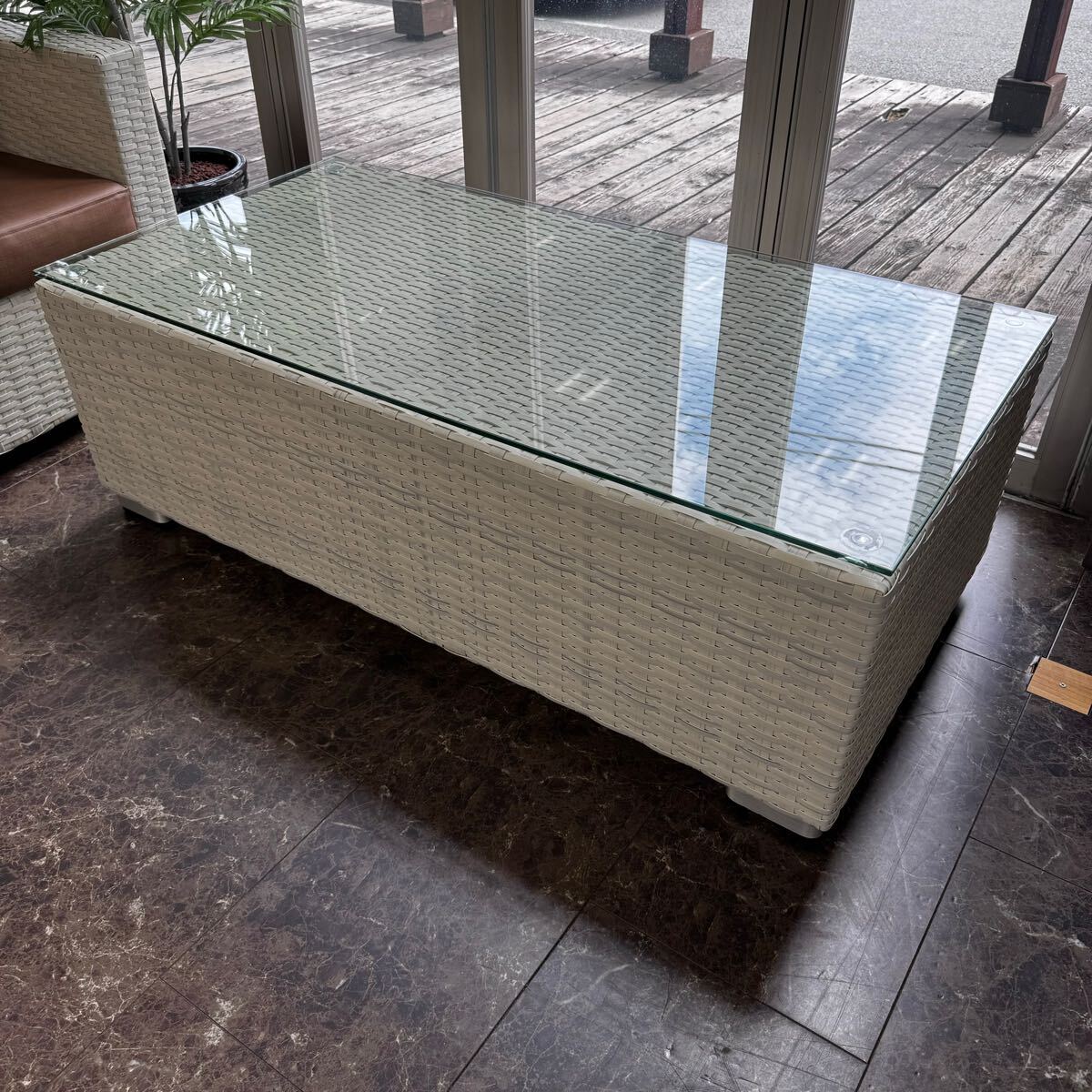 Product name: ☆ 美品 展示品 桜屋工業株式会社 ガーデンソファ ガラステーブルセット ロードス 4点セット ラタン ソファ テーブル 在庫数2セット