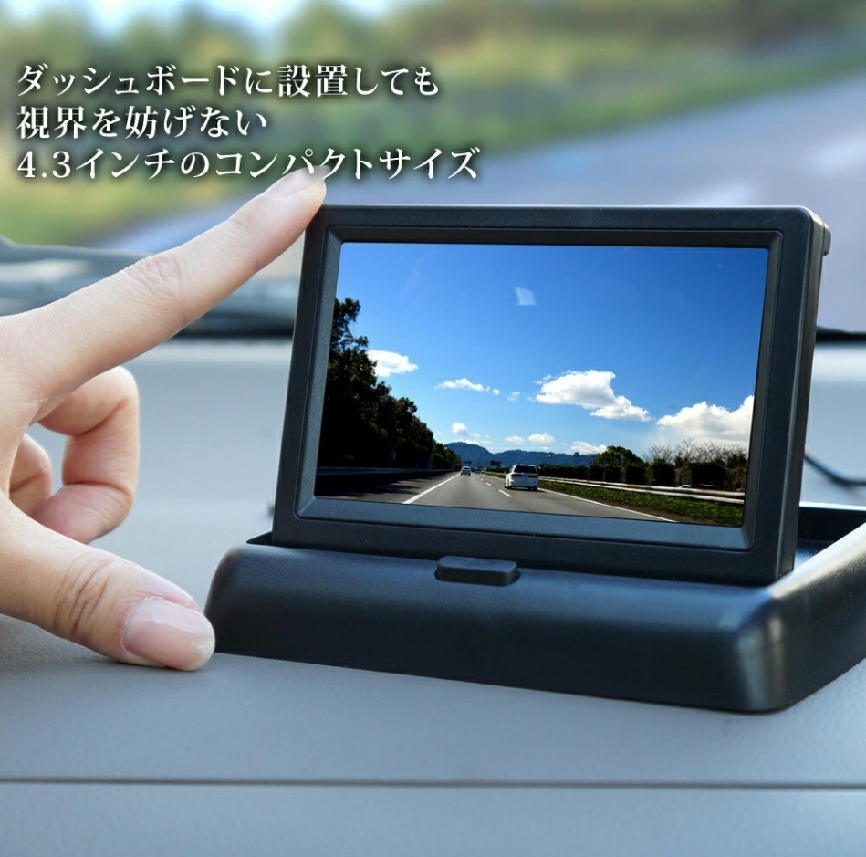 送料無料!12V車専用対応 4.3インチフリップ式 バックカメラセット オンダッシュモニター 高画質バックカメラ ガイドラインあり