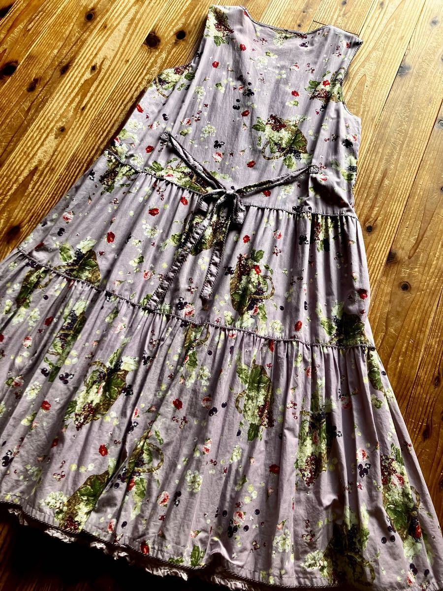 美品 ピンクハウス 綿ローン フルーツ籠pt 裾ピコノースリーブワンピース パープル