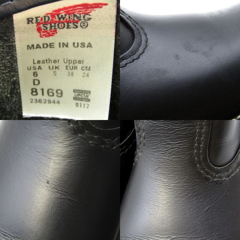 REDWING レッドウィング US6D 24cm ペコスブーツ 8169 PECOS BOOTS プルオンブーツ 2017年製 ワークブーツ ブラック クローム 10007393