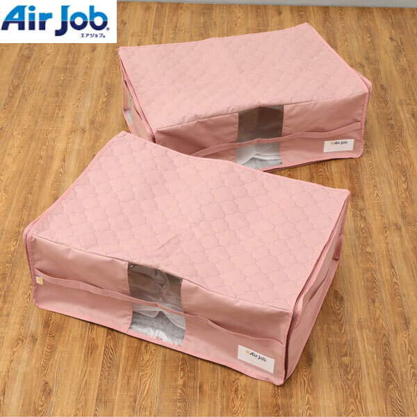 備長炭エアジョブ 軽圧縮収納ケース 同色2枚組(深型) ピンク 9515円相当