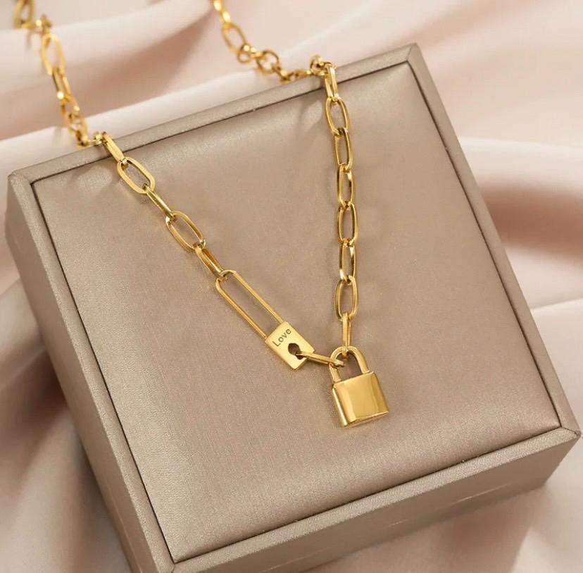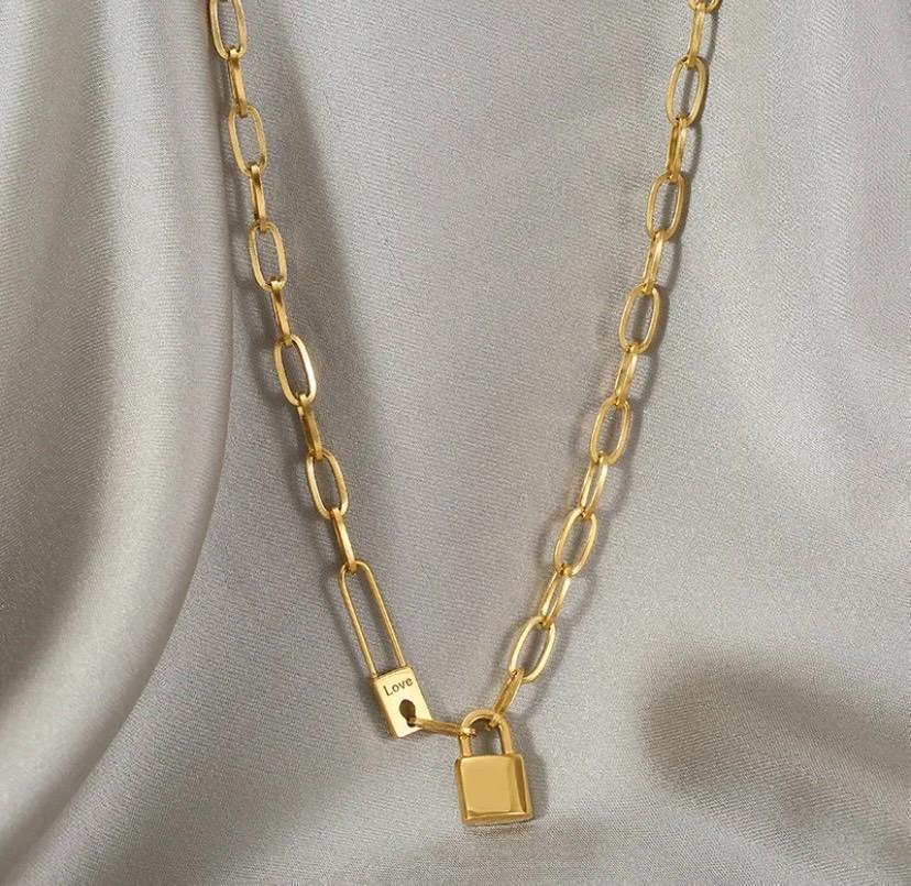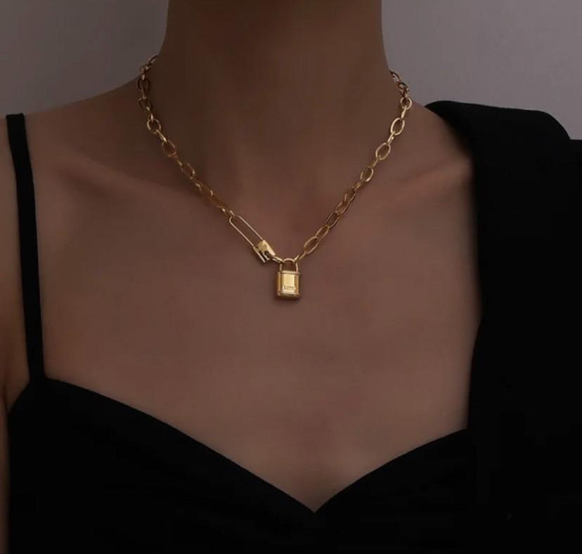N-100.ゴールド ネックレス 南京錠 鍵 アレルギー対応