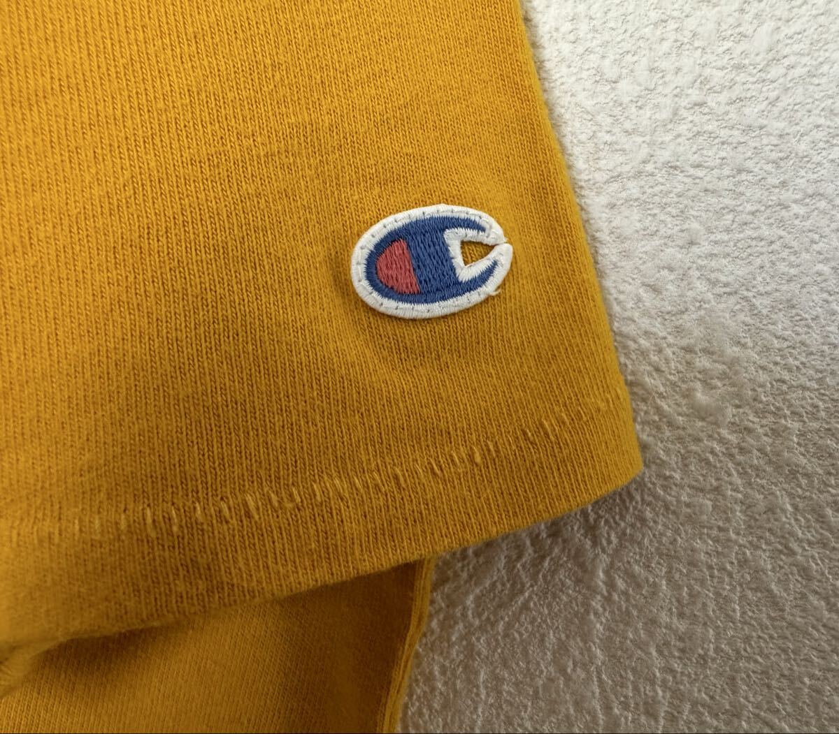 Product name: champion チャンピオン Tシャツ 3段プリント フロッキープリント マスタード L 半袖プリントTシャツ アメカジ