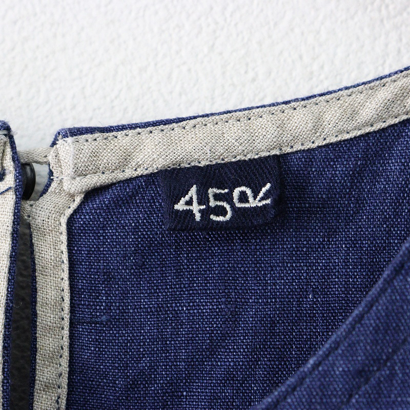 フォーティファイブアール 45R リネンDRESS 0 ブルー/Aラインドレス ワンピース 麻 染色加工 45rpm【2400014528916】
