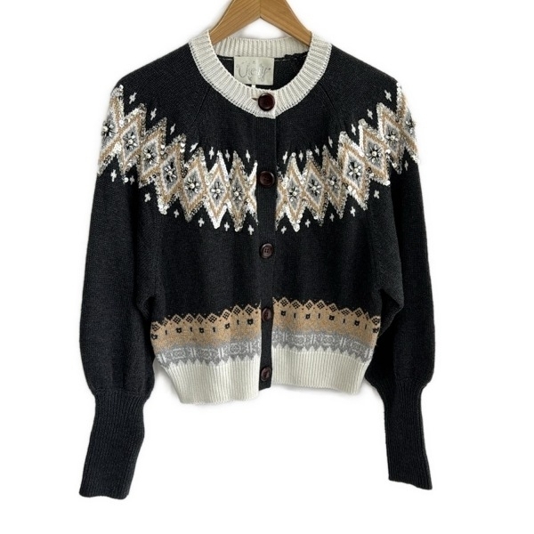 Product name: チェスティ Chesty カーディガン サイズF - ダークグレー×白×ベージュ レディース 長袖/ニット/スパンコール/秋 美品 トップス