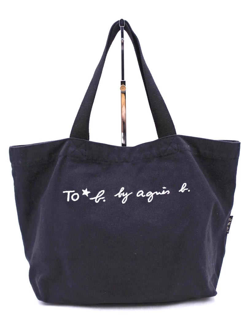 Product name: agnes b アニエスベー キャンバス ロゴ 刺繍 トート バッグ 黒 ■■ ☆ fgc8 レディース