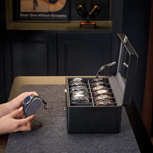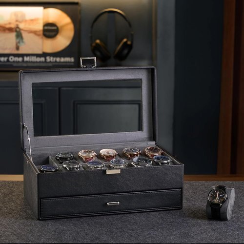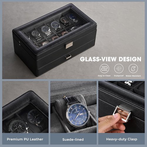 透明ガラス蓋:丈夫なガラス窓は時計コレクションを美しく見せ、ホコリから守り、お気に入りの時計を一目で見つけられるので時間を節約できます。