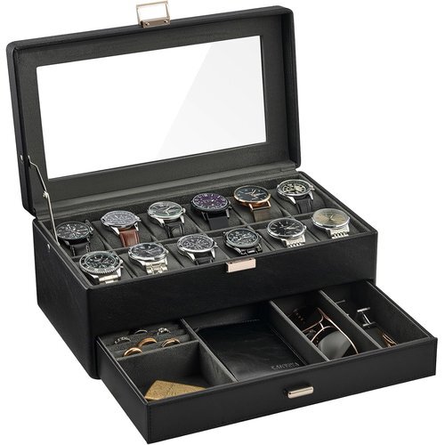 新品 ProCase ガラス蓋付きディスプレイ ュエリーオーガナイザーボックス 引き出し付き メンズ ウォッチボックス 200