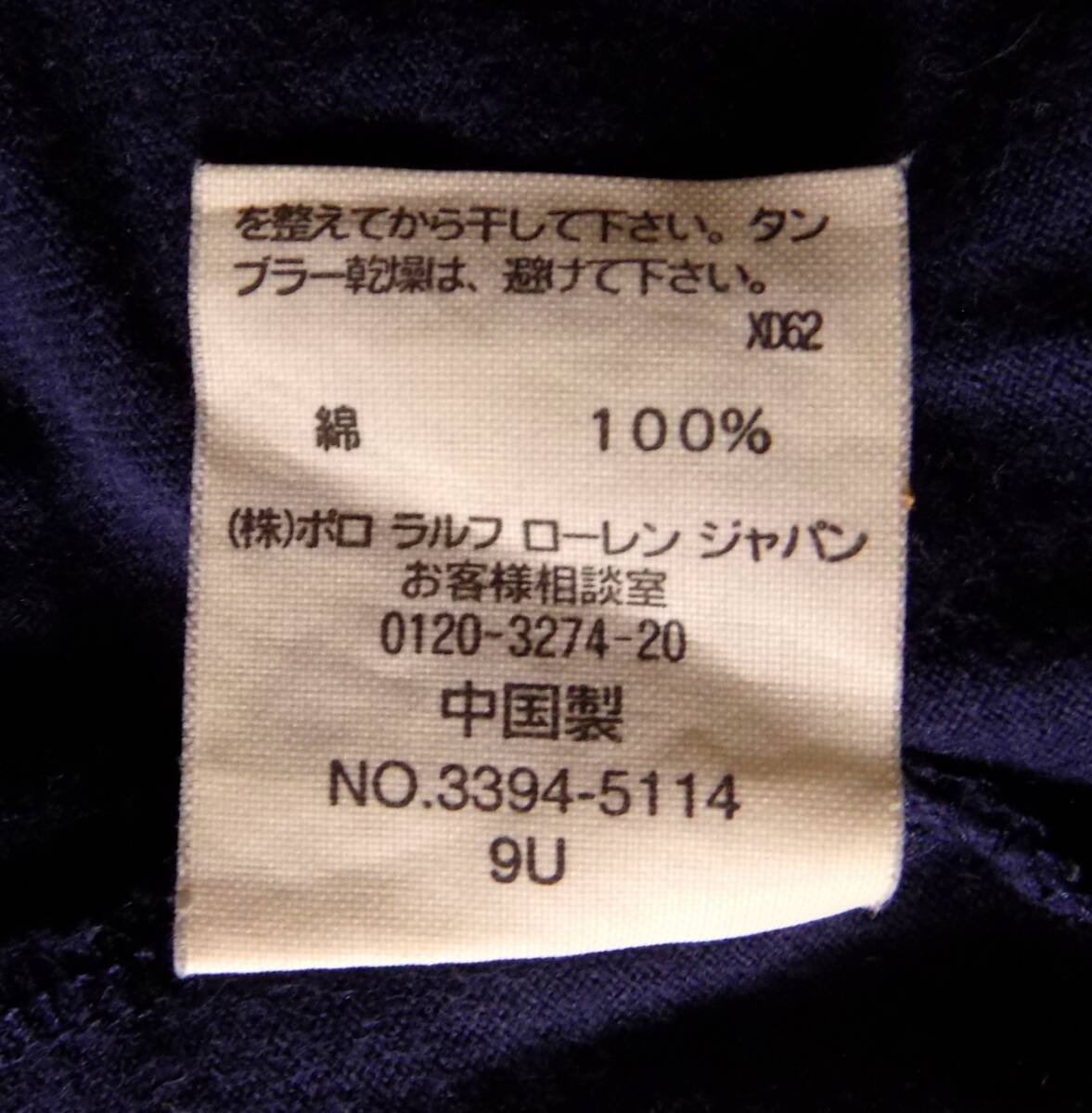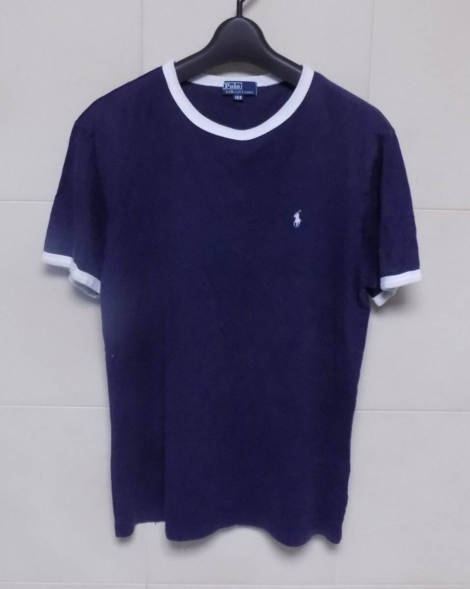 ラルフローレン 襟ぐり&袖口が白 紺半袖Tシャツ 160  (管X2)