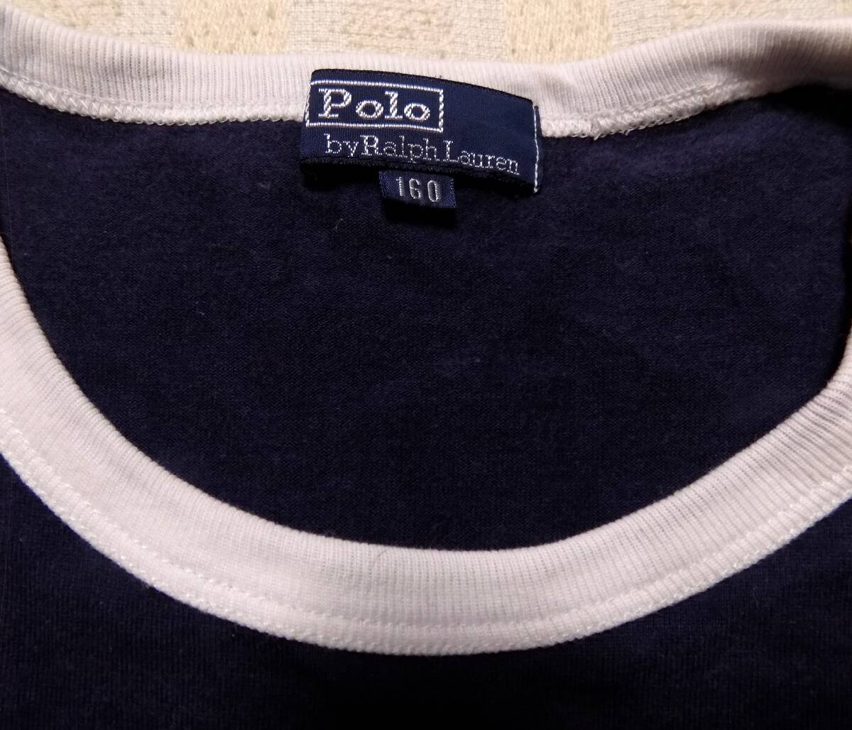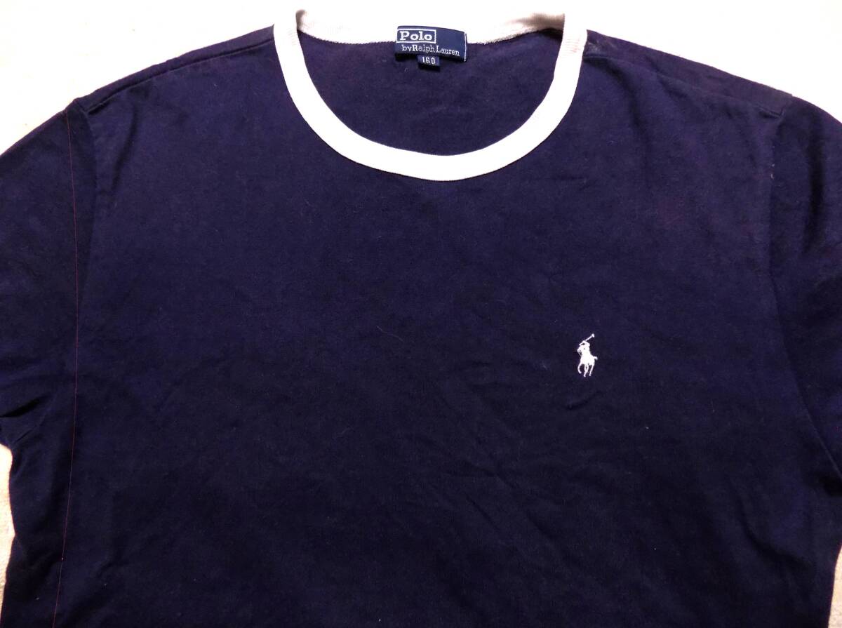 Product name: ラルフローレン 襟ぐり&袖口が白 紺半袖Tシャツ 160  (管X2)