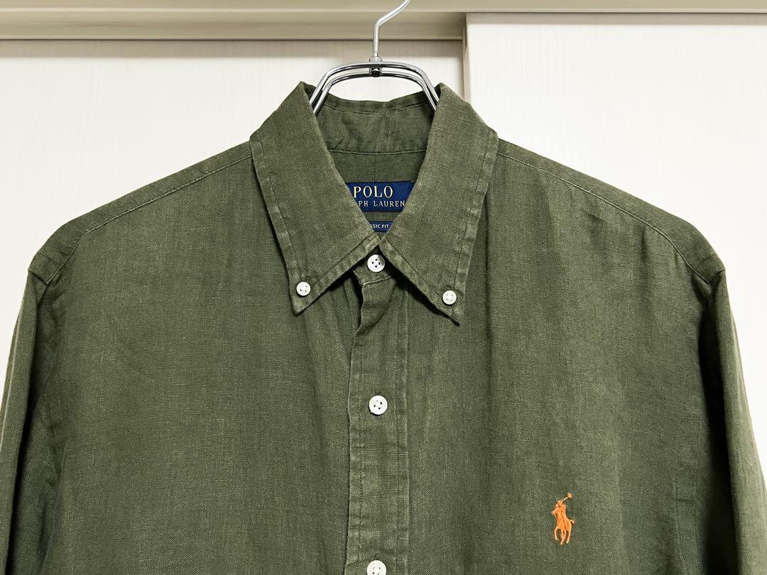 Product name: 即決★M ワンポイント POLO RALPH LAUREN★リネンシャツ ポロラルフローレン カーキ リネン 麻 現行品