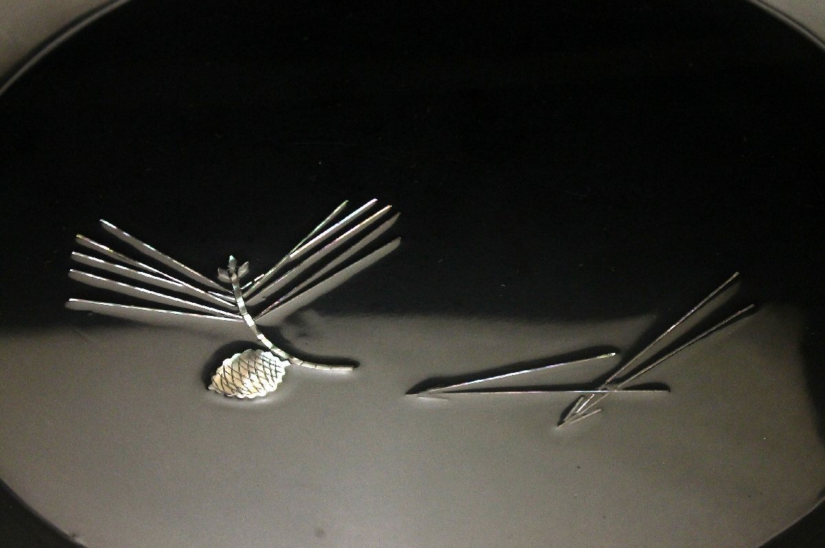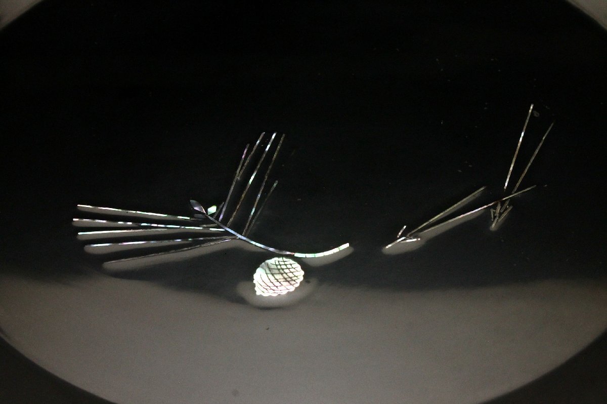 Product name: 【余韻】 茶道具 天然木製 漆塗 真塗 螺鈿細工 松文 丸盆 2点★菓子盆 径:24cm<同梱可>