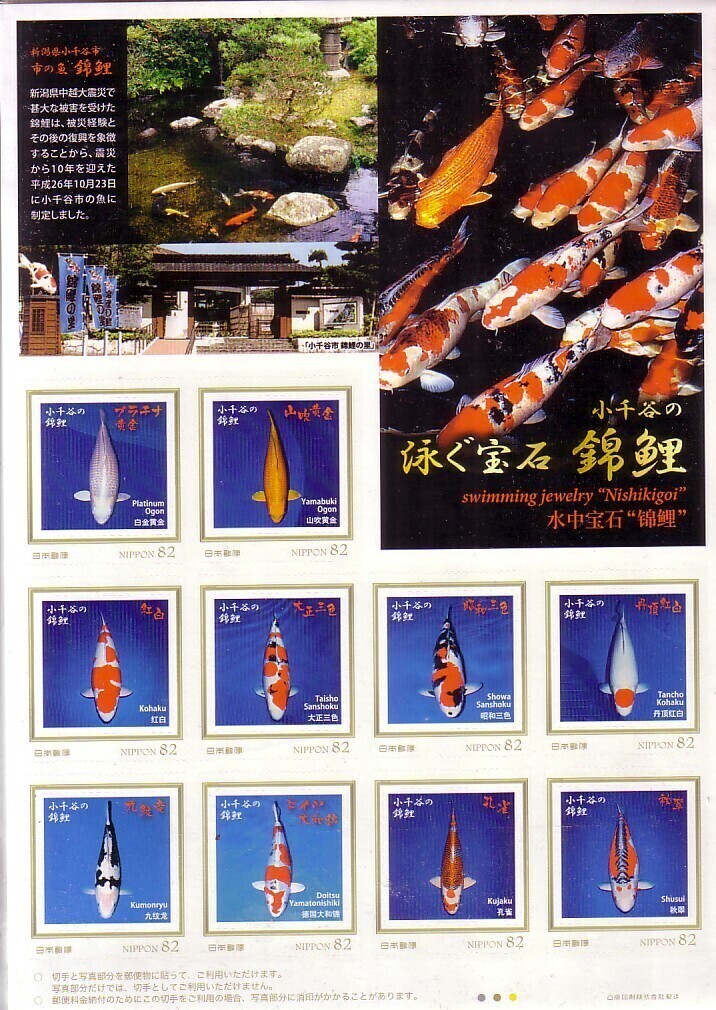 「小千谷の泳ぐ宝石 錦鯉」のフレーム切手です(82円切手X10枚)。送料は普通140円(普通便 複数同梱発送では180円)になります。
