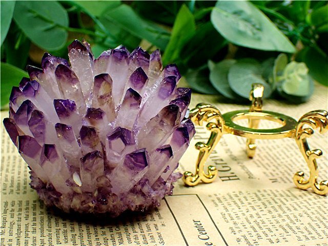 紫水晶(アメシスト)は石英(クォーツ)グループの仲間です。 このグループには、誕生石にも選ばれているシトリンやブラッドストーン、サードオニキスをはじめ、ロッククリスタル、ロースクォーツ、ブラックオニキス、アベンチュリンクォーツなどが含まれますが、なかでも宝石としてもっとも高い評価を受けているのが、このアメシストです。和名で、紫水晶というとおり、紫色の水晶がアメシストとよばれます。 紫色は、高貴な色と考えられていて、このアメシストは、聖職者の世界では常に最高級の評価を与えられてきました。アメシストは、誠実、心の平和の象徴とされています。高次元の意識と繋がりやすくしてくれます。精神のエネルギーを高めます。アメシストは私達が宇宙の一部であることに気付かせてくれる意志を持つ石で、宇宙の法則にしたがって生きることを導いてくれると感じます