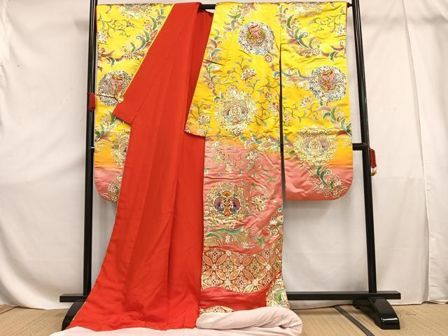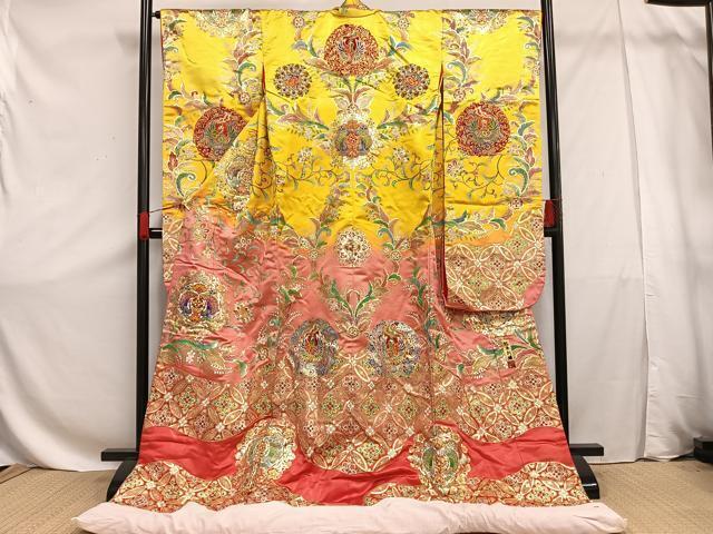 平和屋本店▼色打掛 和装 婚礼 結婚式 花嫁 神社挙式 中国三大刺繍 相良刺繍 更紗花文 孔雀 暈し染め 金彩 逸品 AAAV3863es