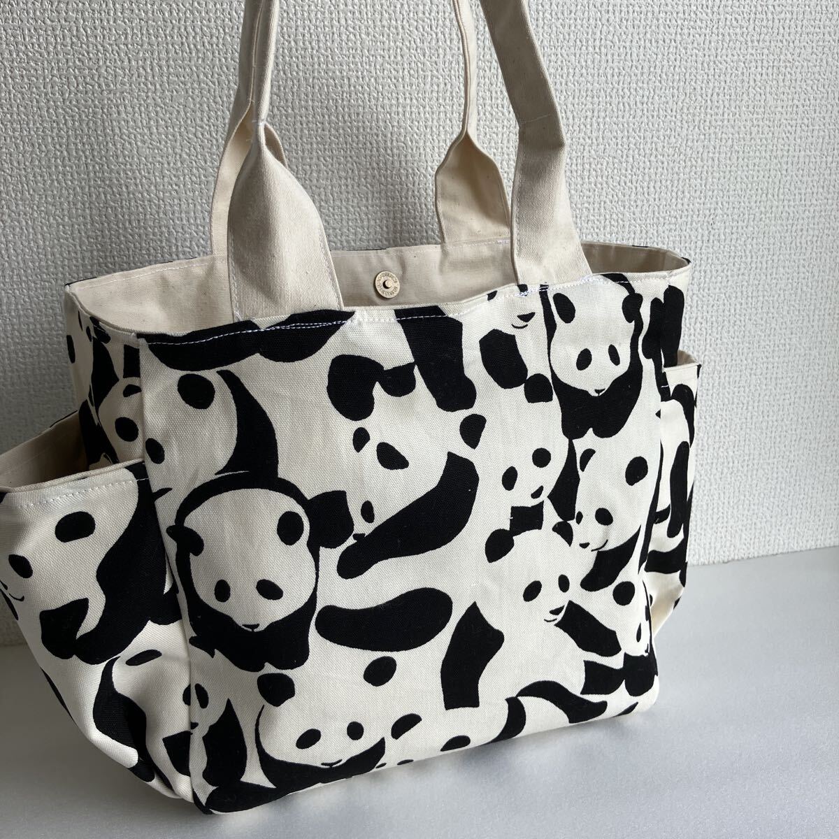ハンドメイド パンダ柄 トートバッグ 両サイド外ポケット