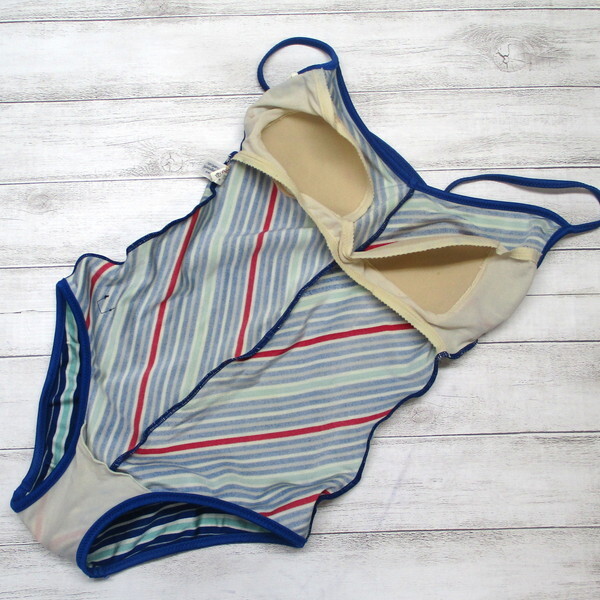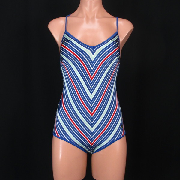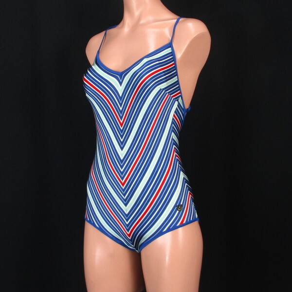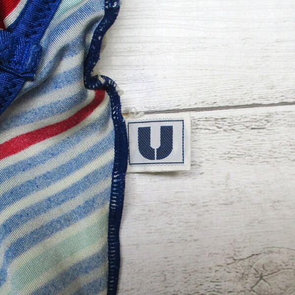 Product name: E6410★使用感あり 水着 ワンピース レディース 9M レトロ 斜めストライプ ウンガロ ブルー系 ツルスベ 水泳 スイム プール ビーチ 海